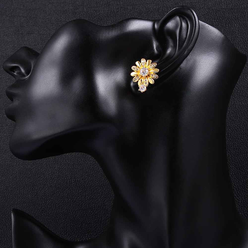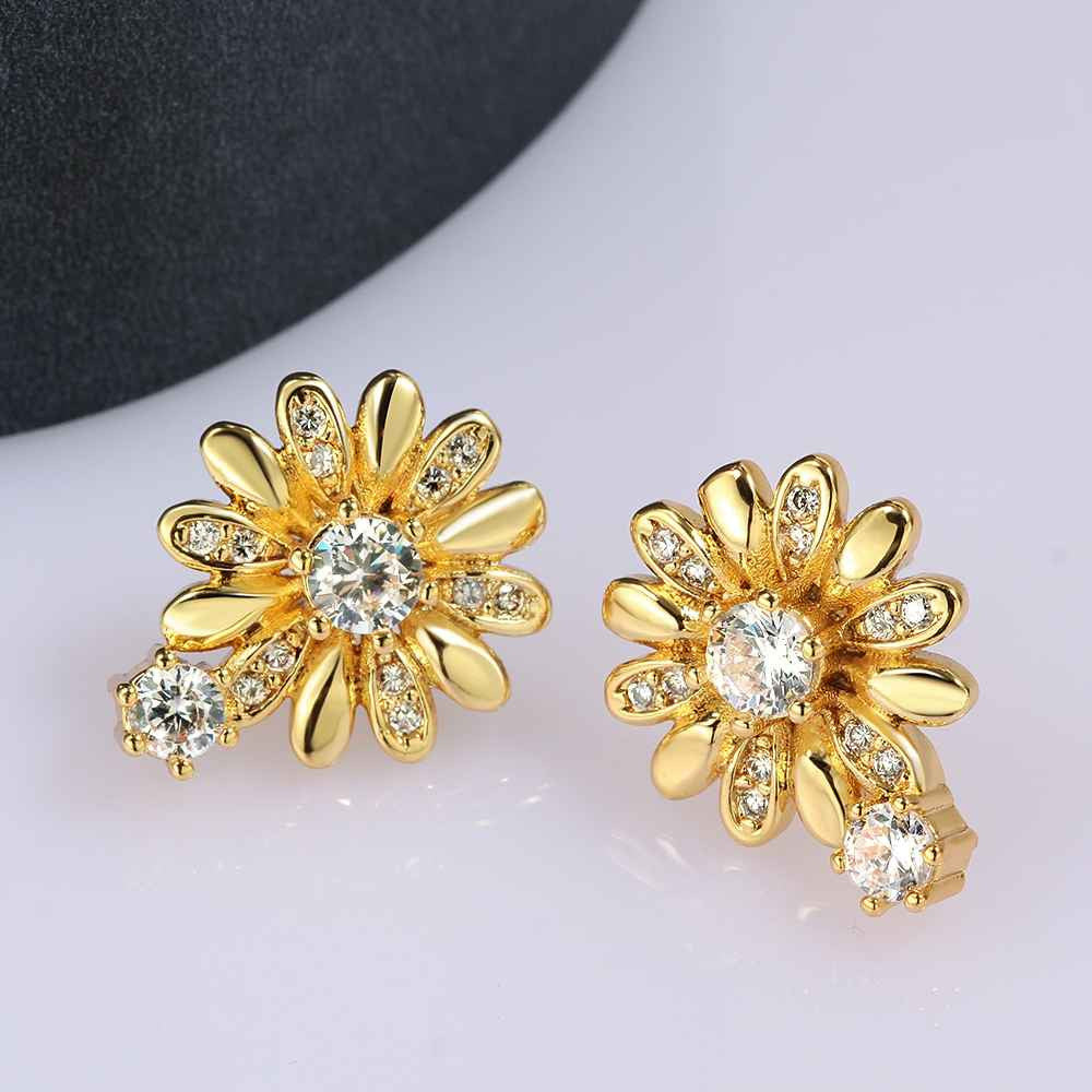 18K Gold Plating earing ethnic crystal flower stud pendientes sport SKGE 23 ELY