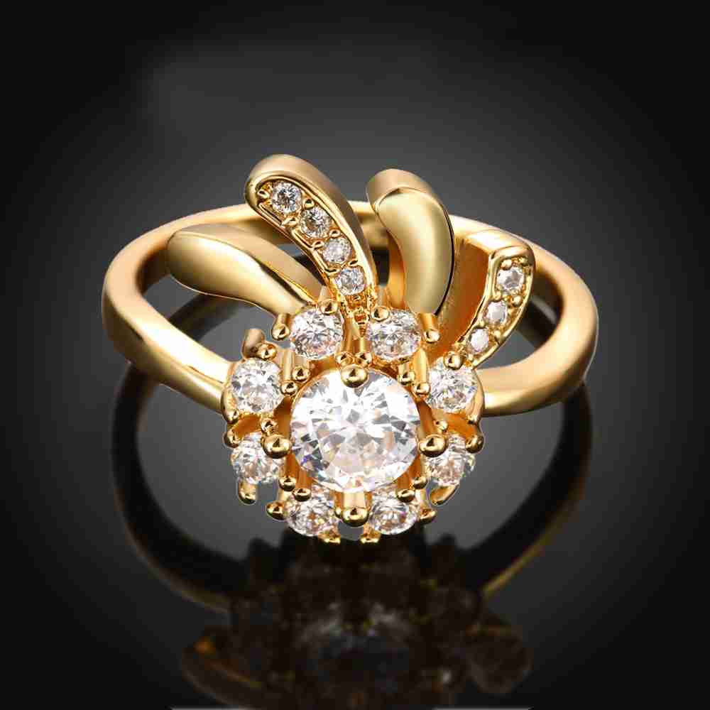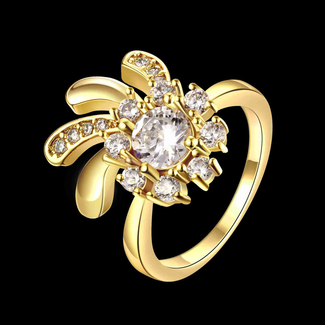18K Gold Plating wedding rings Flowers in full bloom anillos bear Elegant ELY
