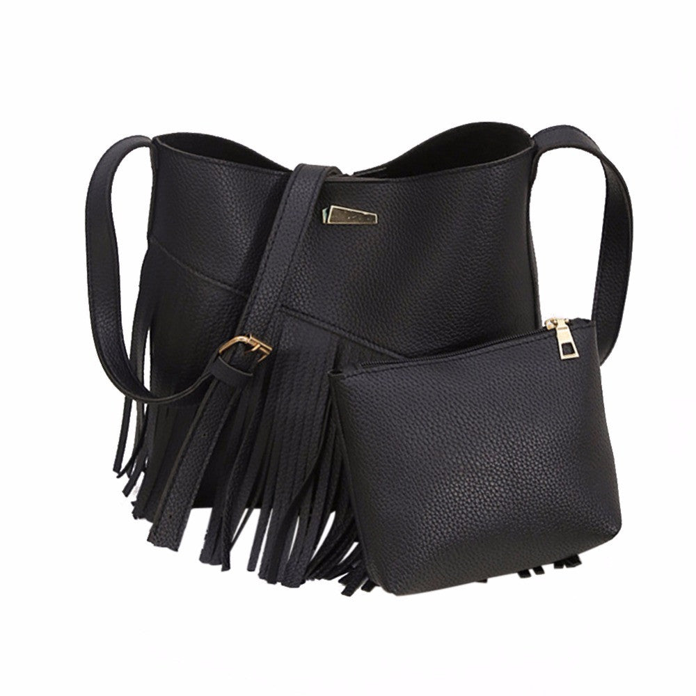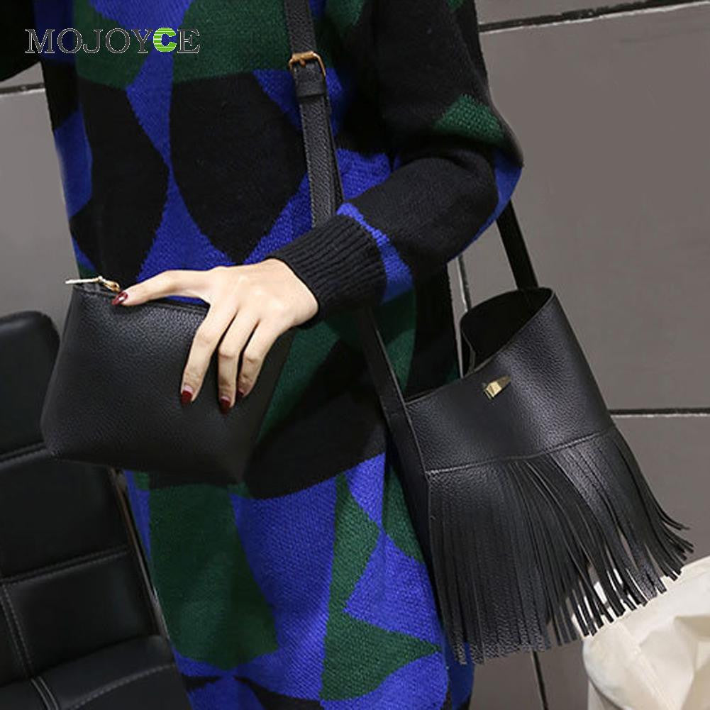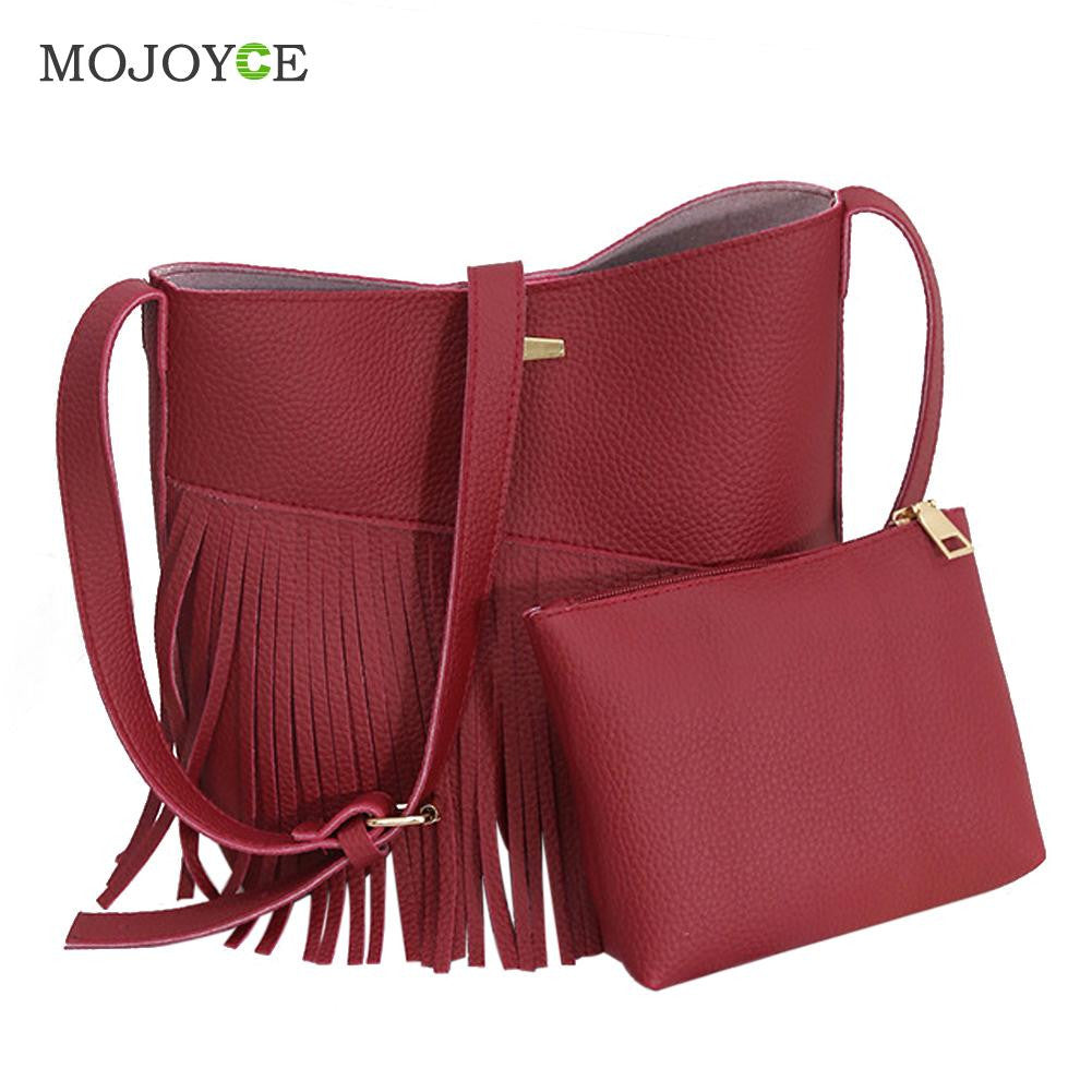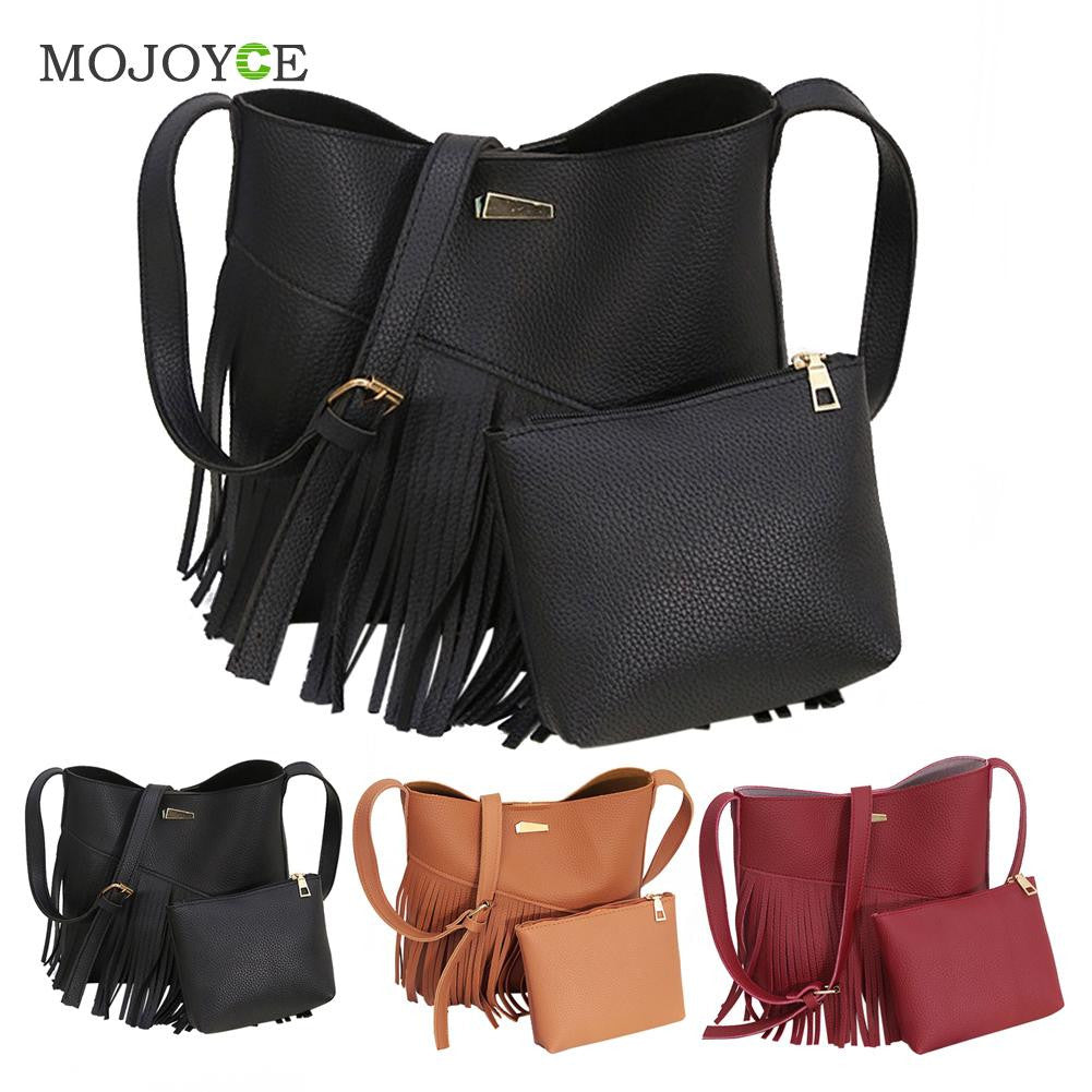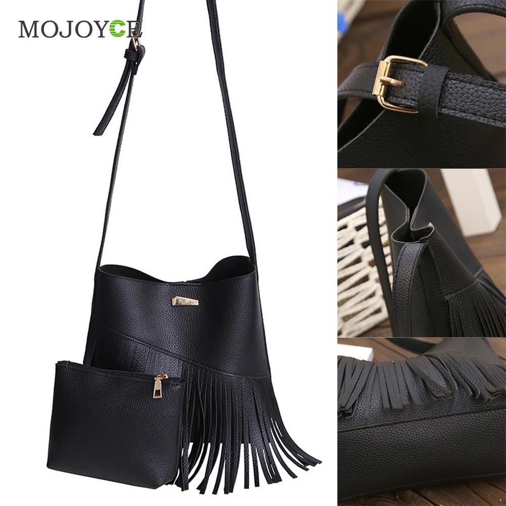 2pcs PU Lether Women Bag Tassel Shoulder Crossbody Bag Retro Women Leather Handbags Women Messenger Bag ELY