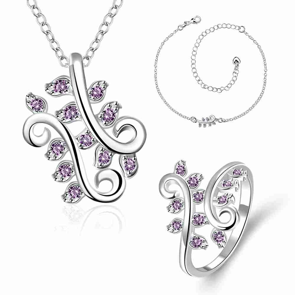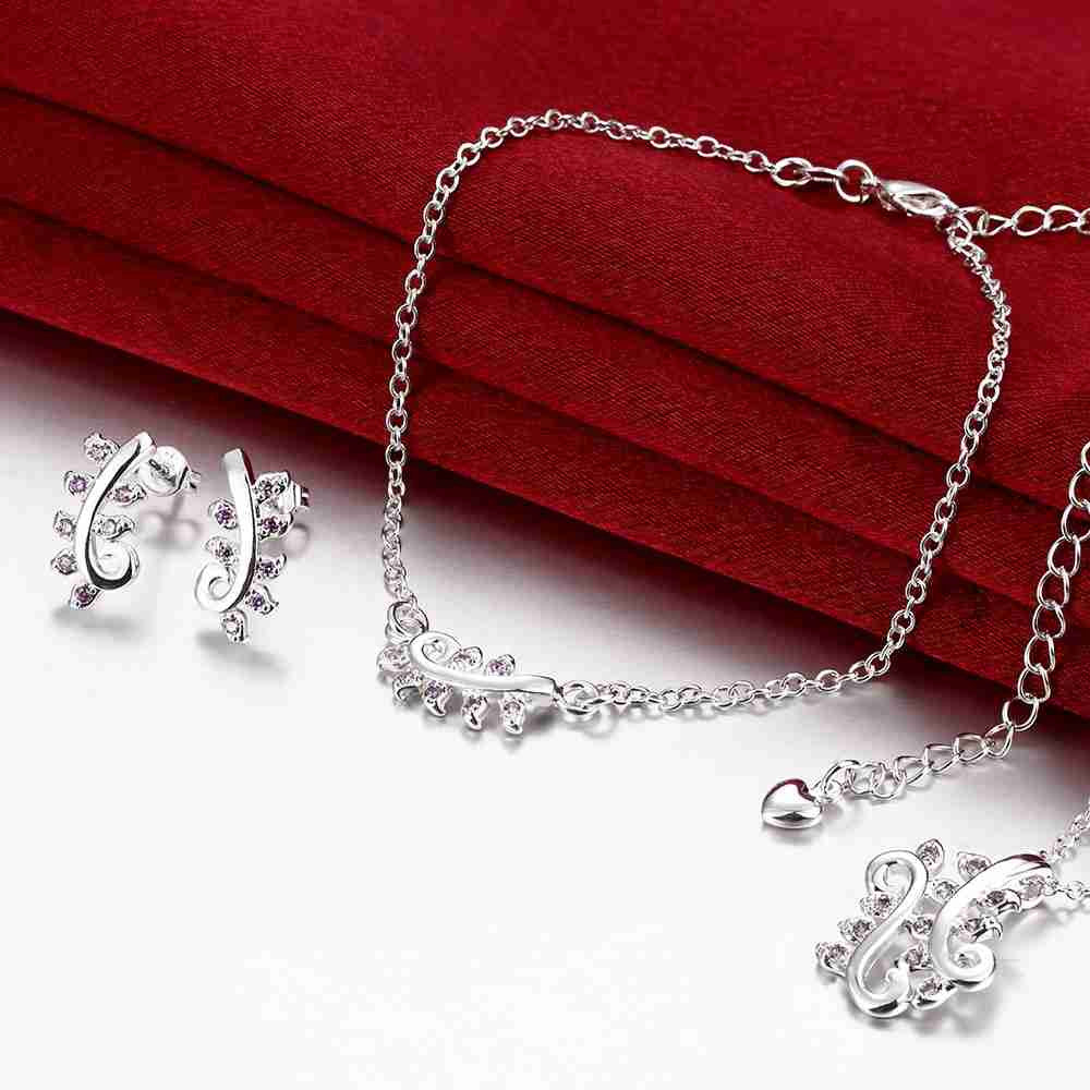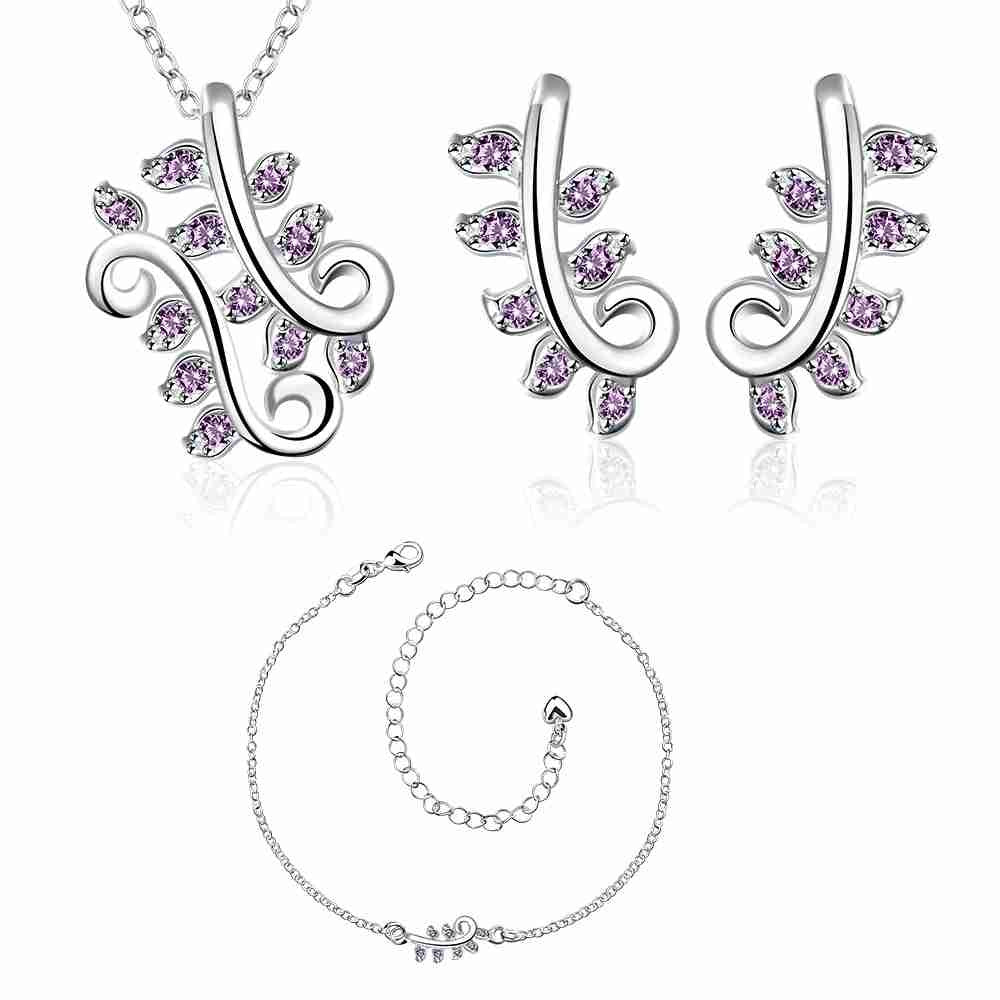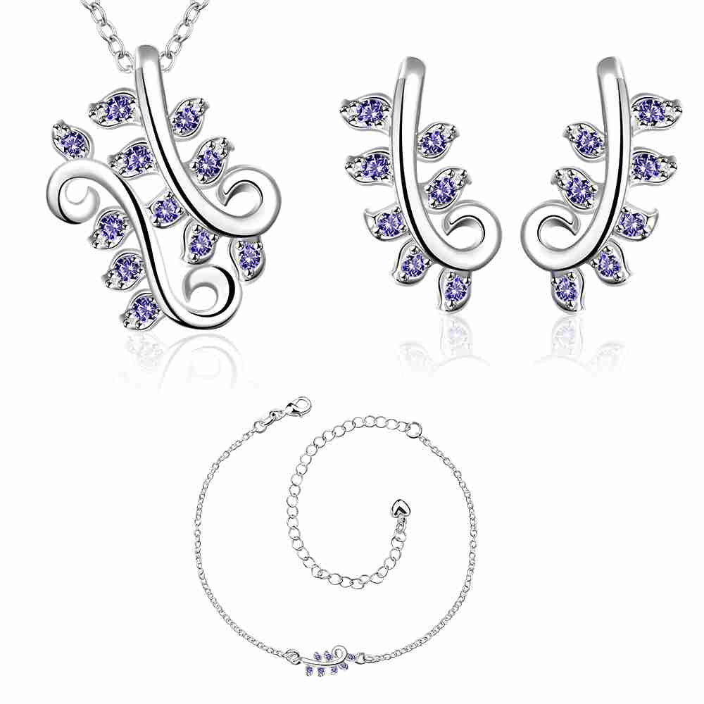 aliexpress silver jewelry sets leaf crystal earrings Anklet necklace Sets Jewelry European Style187 ELY
