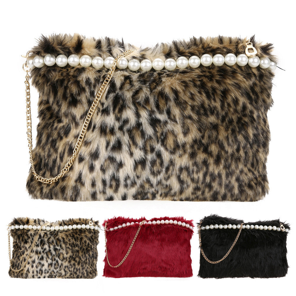 Artificial Conny Wool Women Bag Handbag Ladies Shoulder Bag Women Messenge Bags Leopard Fur Shoulder Bag Clutch ELY