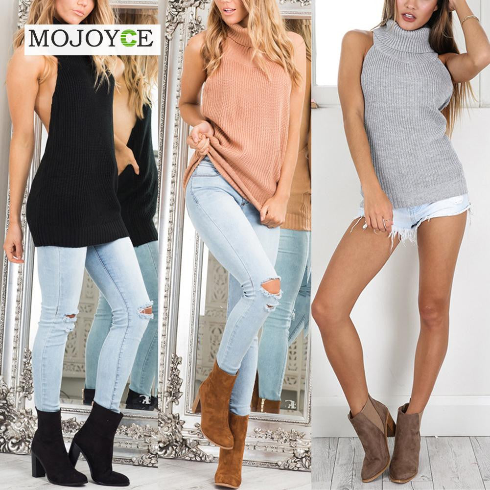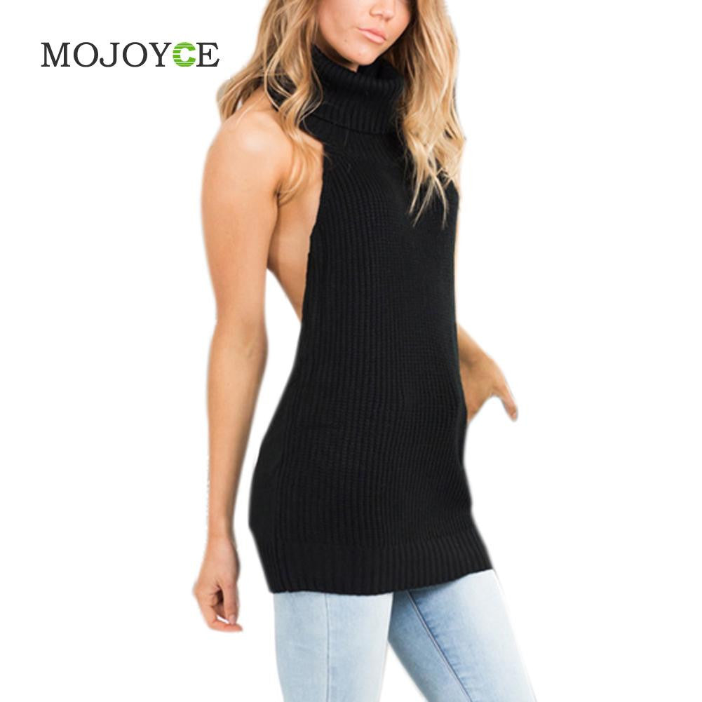 Backless Sleeveless Women Sweaters and Pullovers Turtleneck Knitted Regular Sweater Cardigan Women Pullover Tops Cardigans 1STL ELY