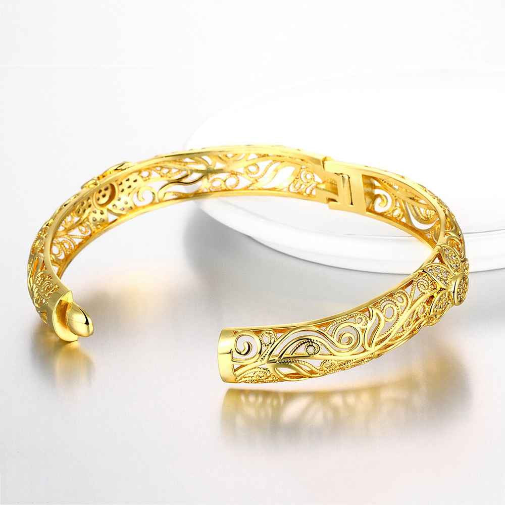 Beautiful 18K Gold Plating Hollow carved pattern Rhinestone men bracelet Jewelry European Style ELY