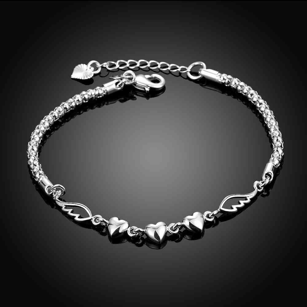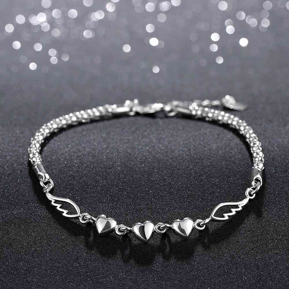 best friends silver charm bracelet Heart feather pulsera jewellery365 ELY