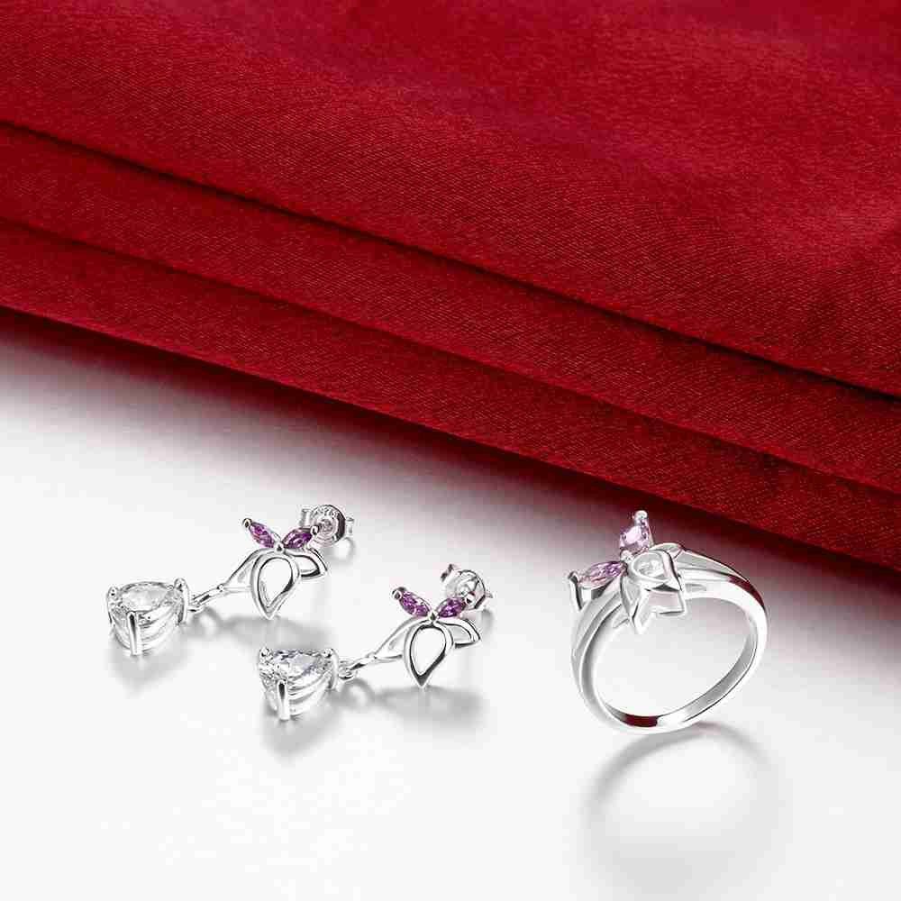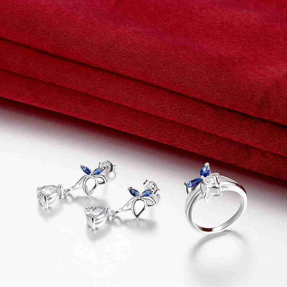 best friends silver plated jewelry sets Dance butterfly ring + Earrings african jewelry set joias 41 ELY