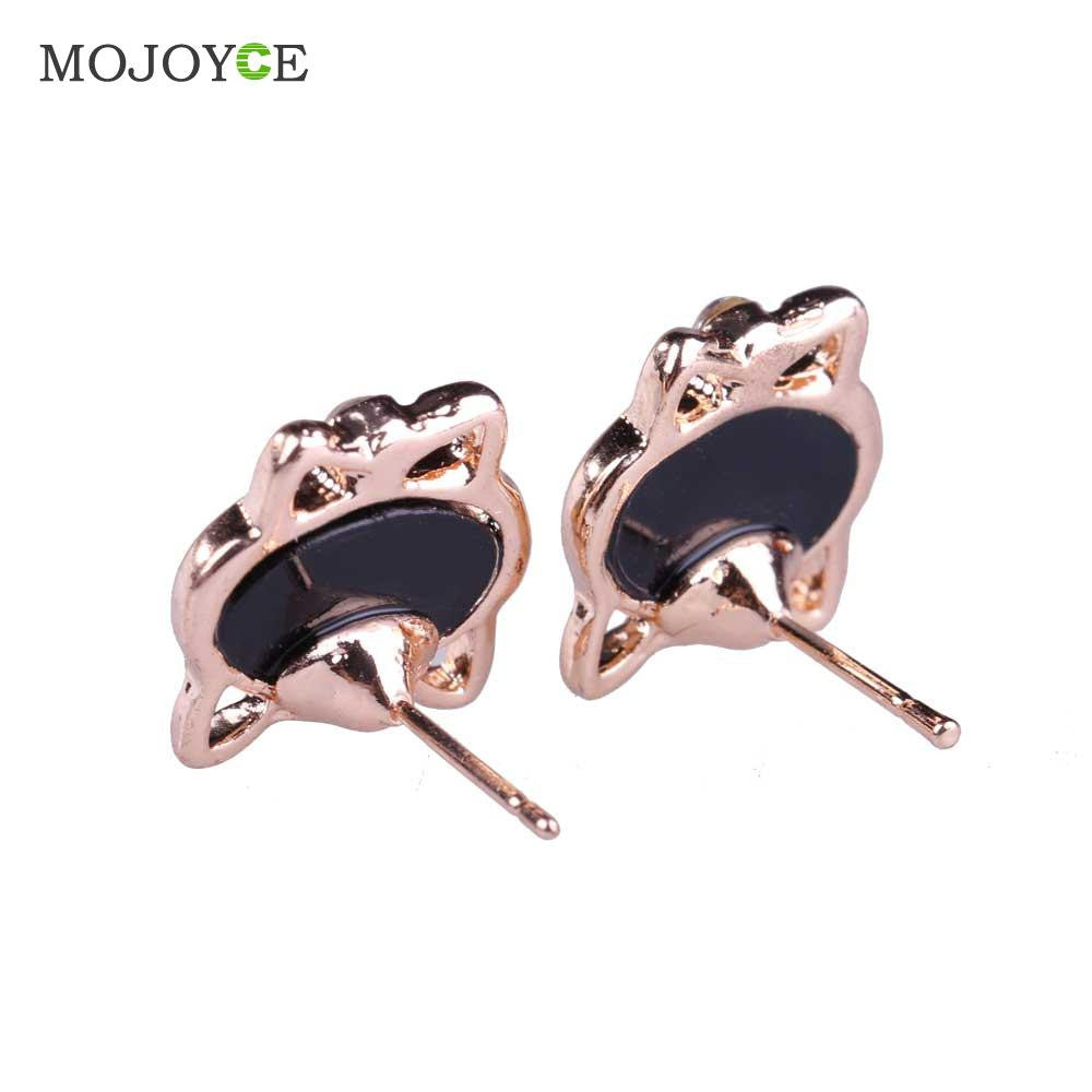 Black Cute Enamel Cat Head Crystal Earrings Ear Studs Women Jewelry ELY