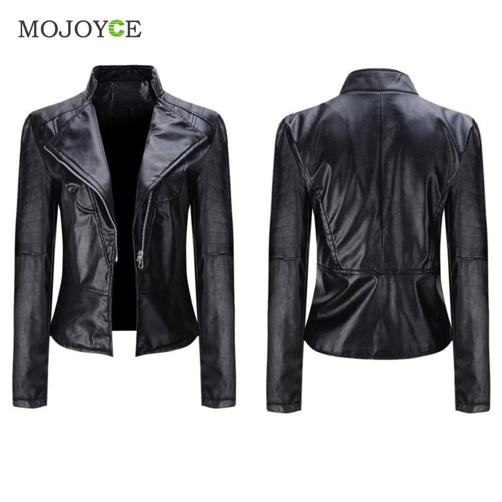 Black Slim Motorcycle Zipper Jacket Soft PU Leather Short Biker Coat Outwear Biker Jacket Jaqueta Feminina Damen Jacket Women ELY