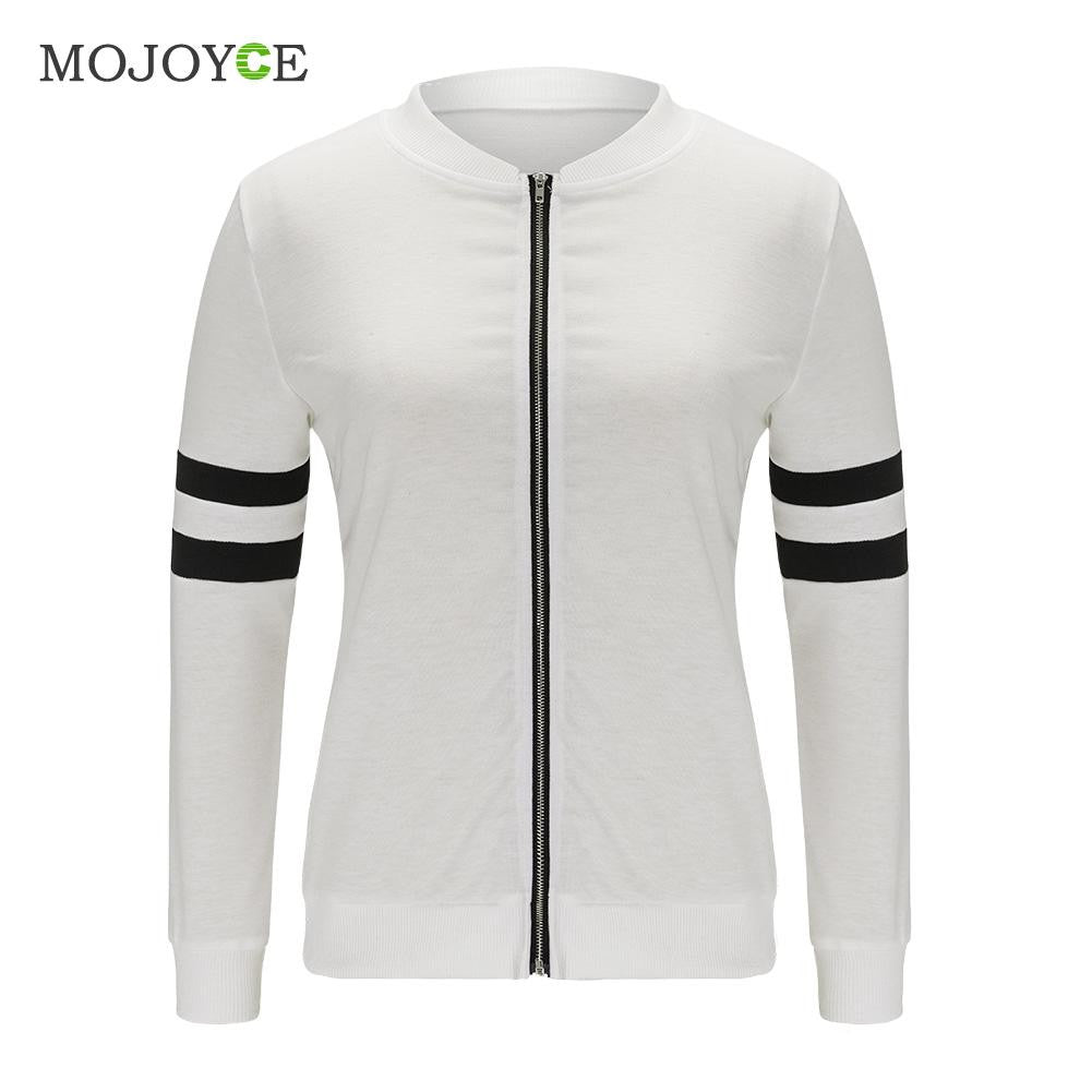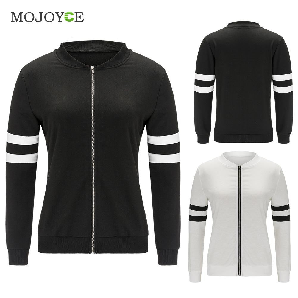 Black White Bomber Jacket Women Zip Up Biker Jacket Casual Interloop Long Sleeves Women Jacket Coat jaqueta feminina ELY