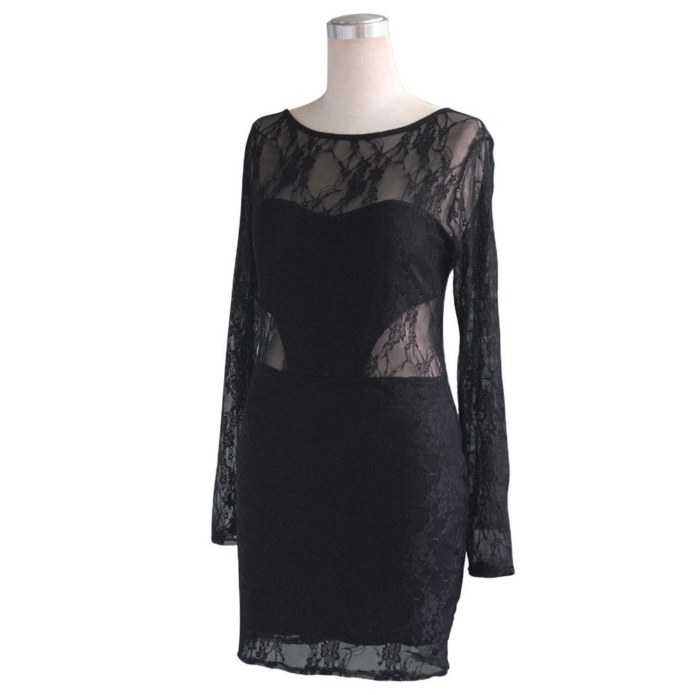 Bodycon Flower Lace Dress Floral Vestidos o-neck Sexy Short Women Backless Dress Clothing Black Red 1STL ELY