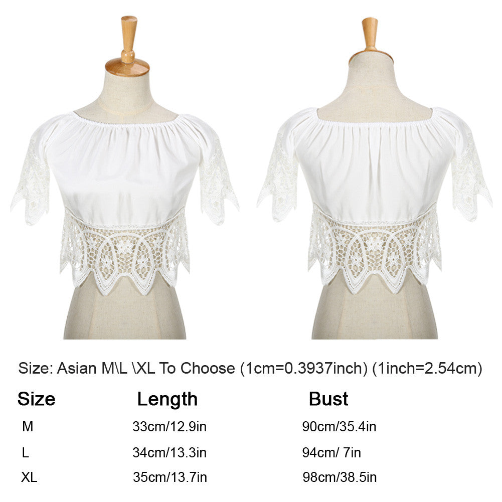 Bohemian White Crop Top for Women Off Shoulder Lace Splice T shirt Camisetas Tops Slash Neck Women Clothing ELY