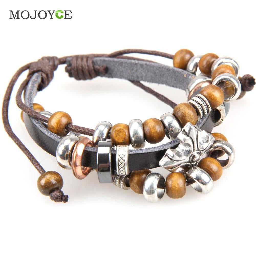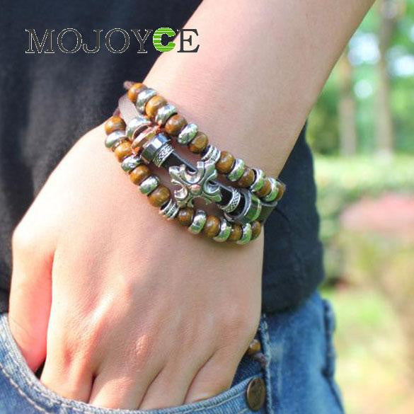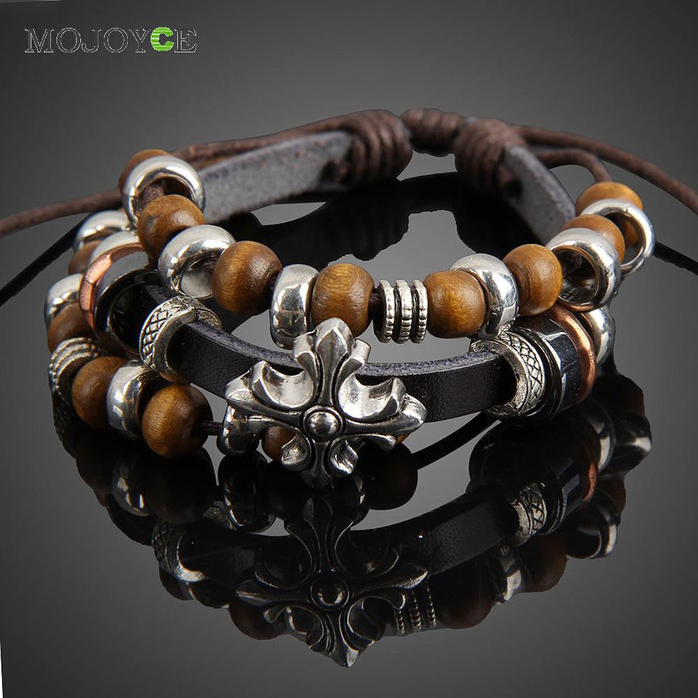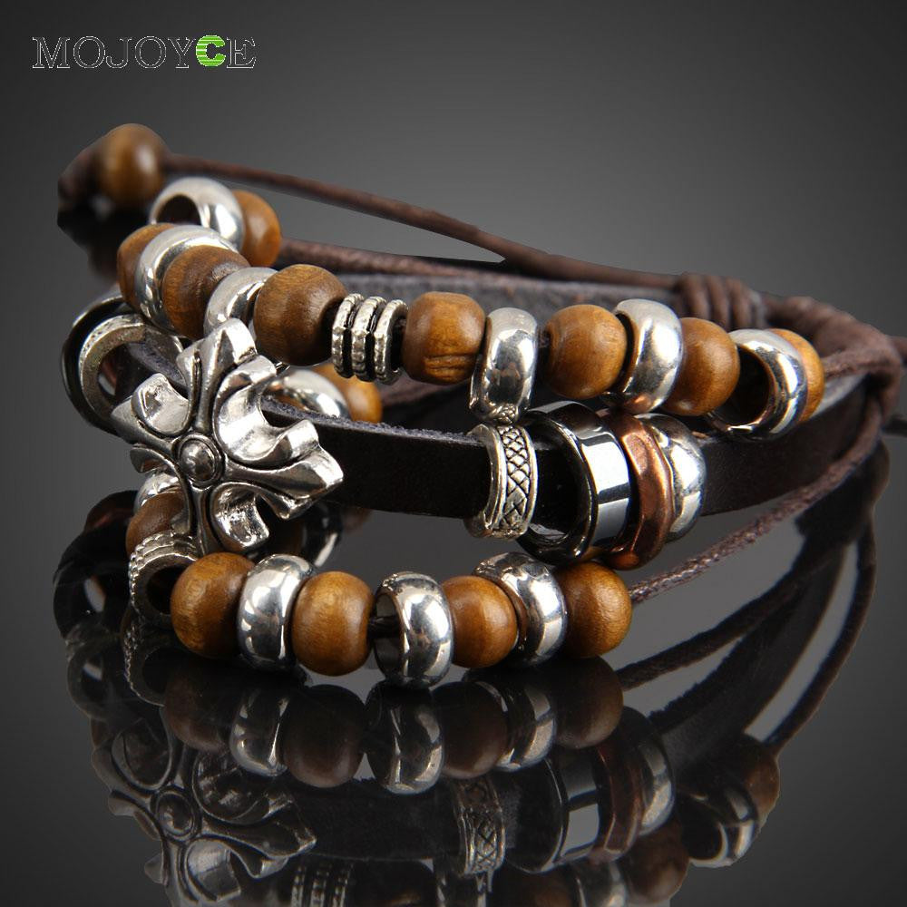 Bronze Cross Beads Multilayer Braid Bracelet String Bangle 1STL ELY