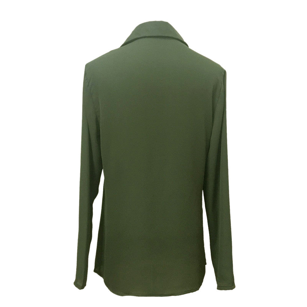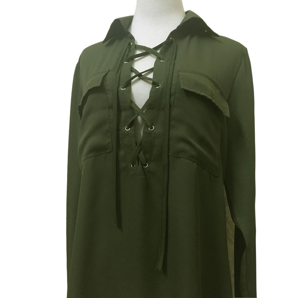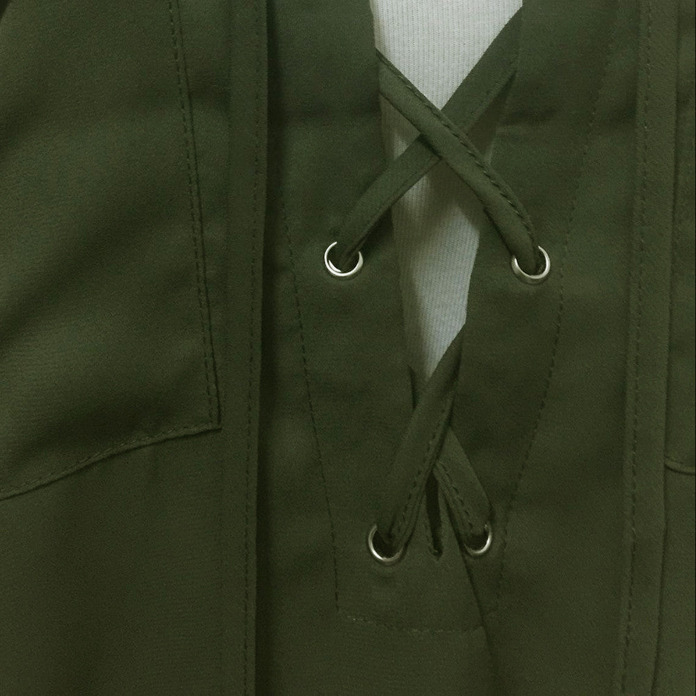 Bust Pocket V-Neck Women Blouses Bandage Lapel Long Sleeve Blouse Shirt Army Green Women Tops Chiffon Blusas Feminino 1STL ELY