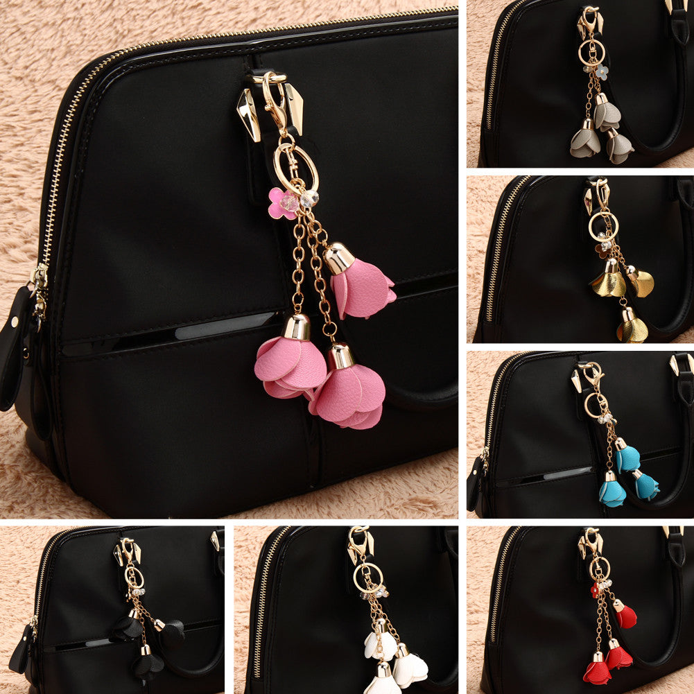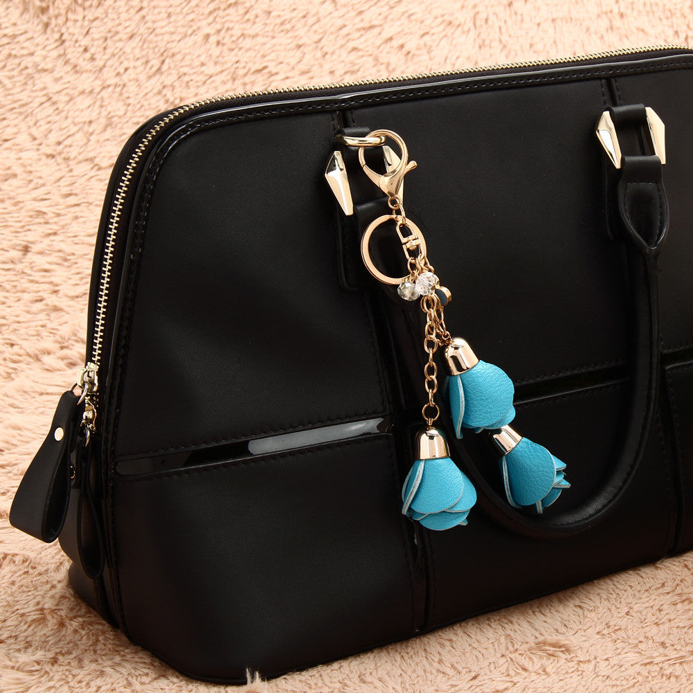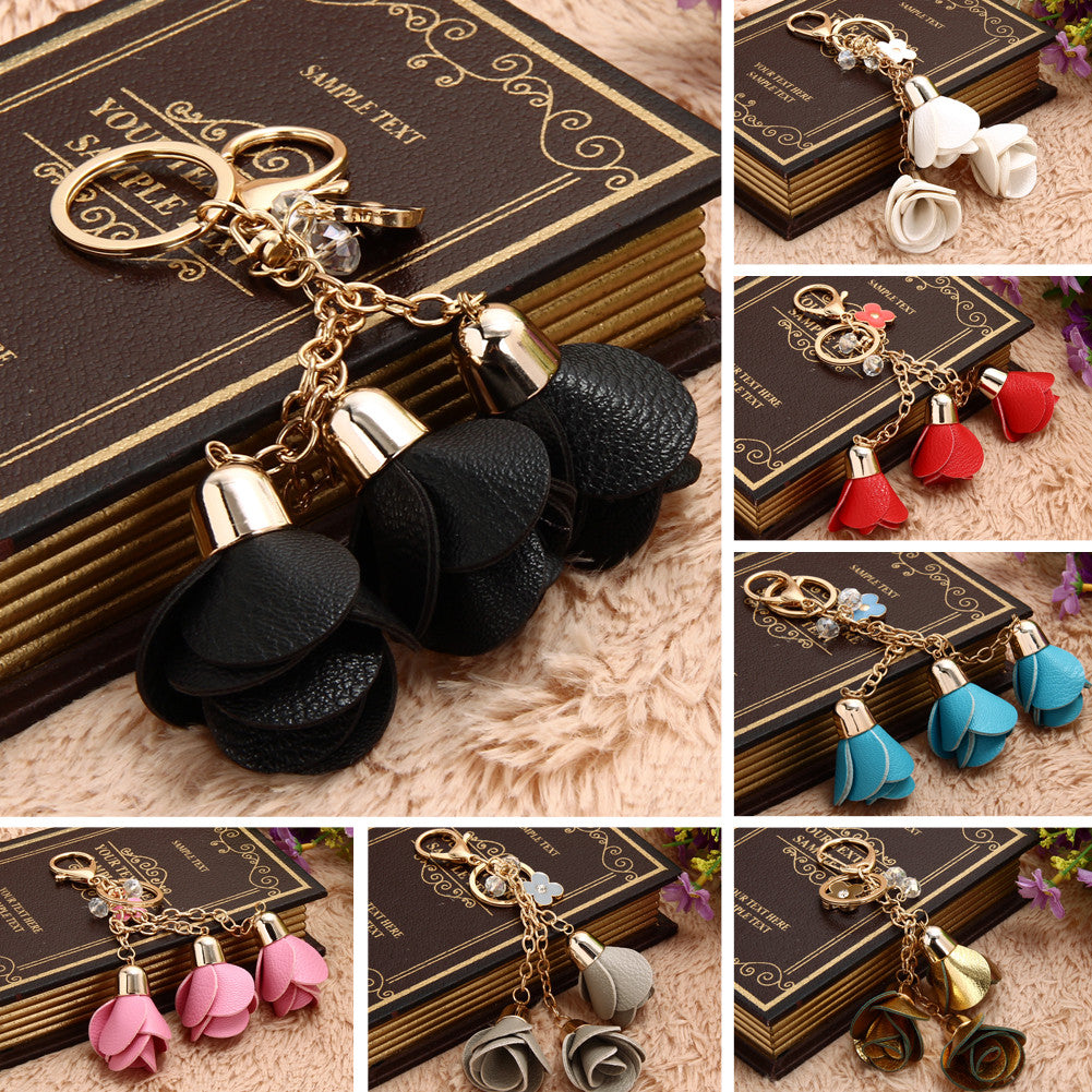 Camellia Leather Keychain Bag Pendant Car Ornaments Long Key Chain Best Gift to Friends 1STL ELY