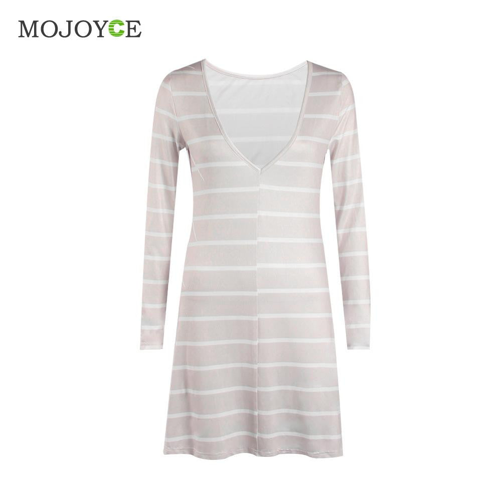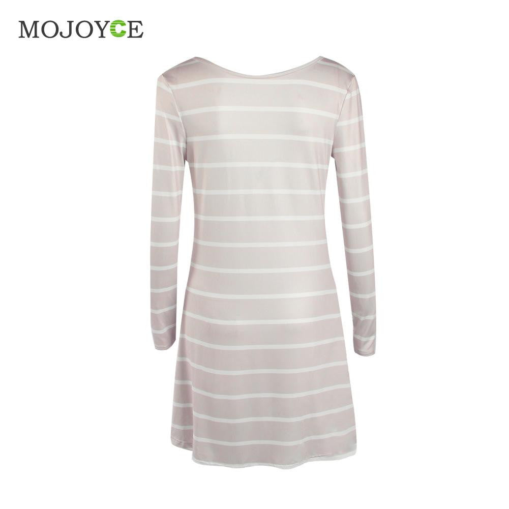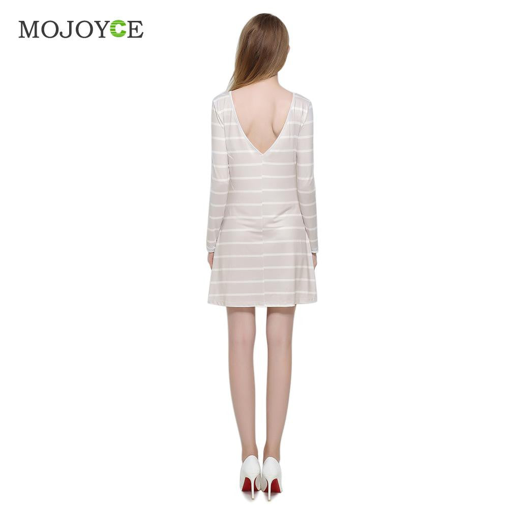 Casual Backless Striped Women Dress Long Sleeve A Line Dress Vestidos SMLXL Beige Dress vestido de festa 1STL ELY