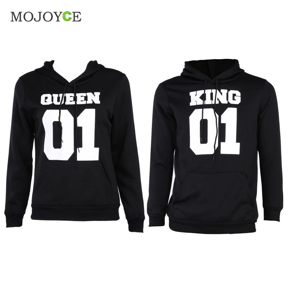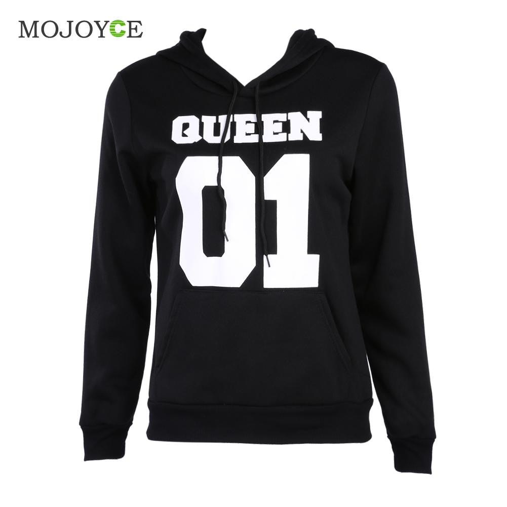 Casual Letter Print Hoodies Women Men Long Sleeve King Queen Printing Loose Sweartershirt Women Men Tops Black Hoodie 1STL ELY
