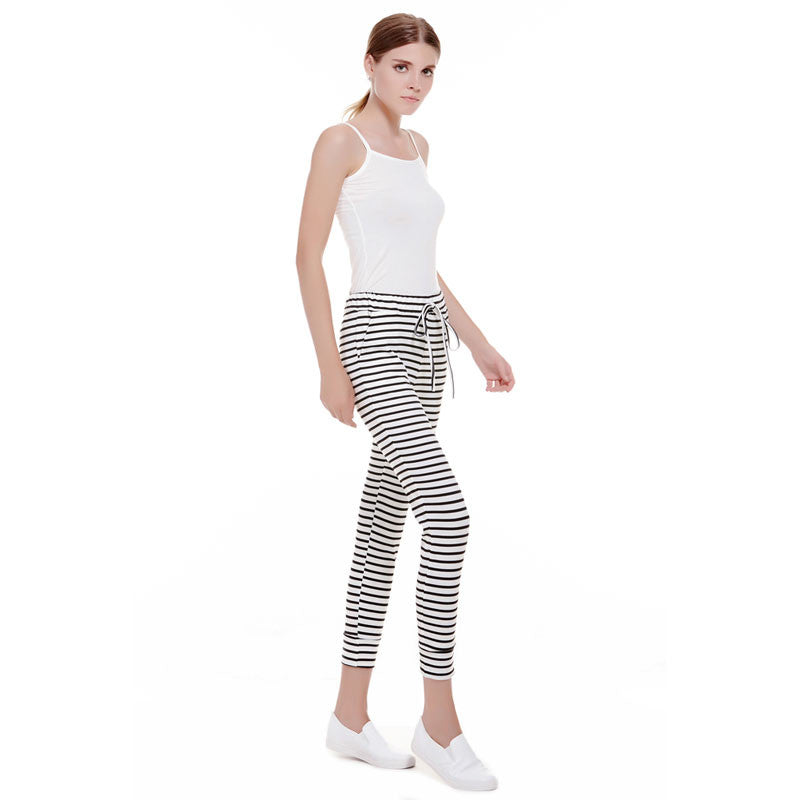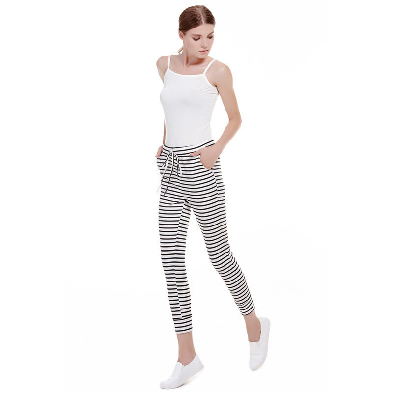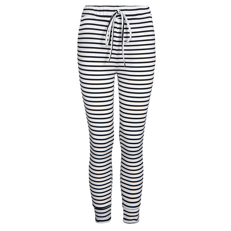 Casual sexy white striped pants slim elastic high waist women trousers bodycon knitted long pants ELY