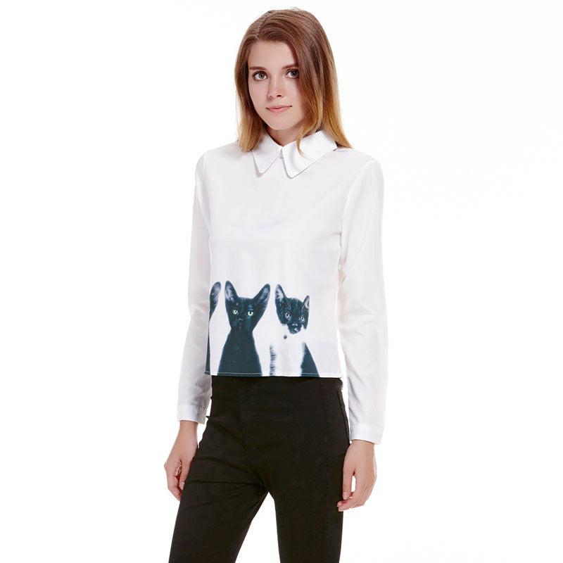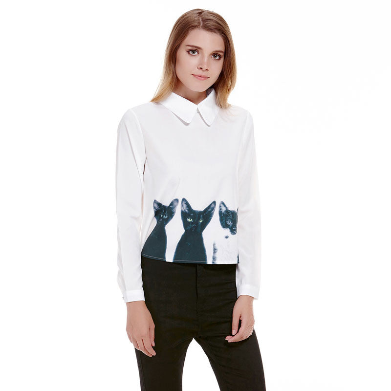 Cats Print Women Blouses All-match Pullover Shirt Casual Chiffon Blusas Shirt Women Plus Size camisa feminina ELY