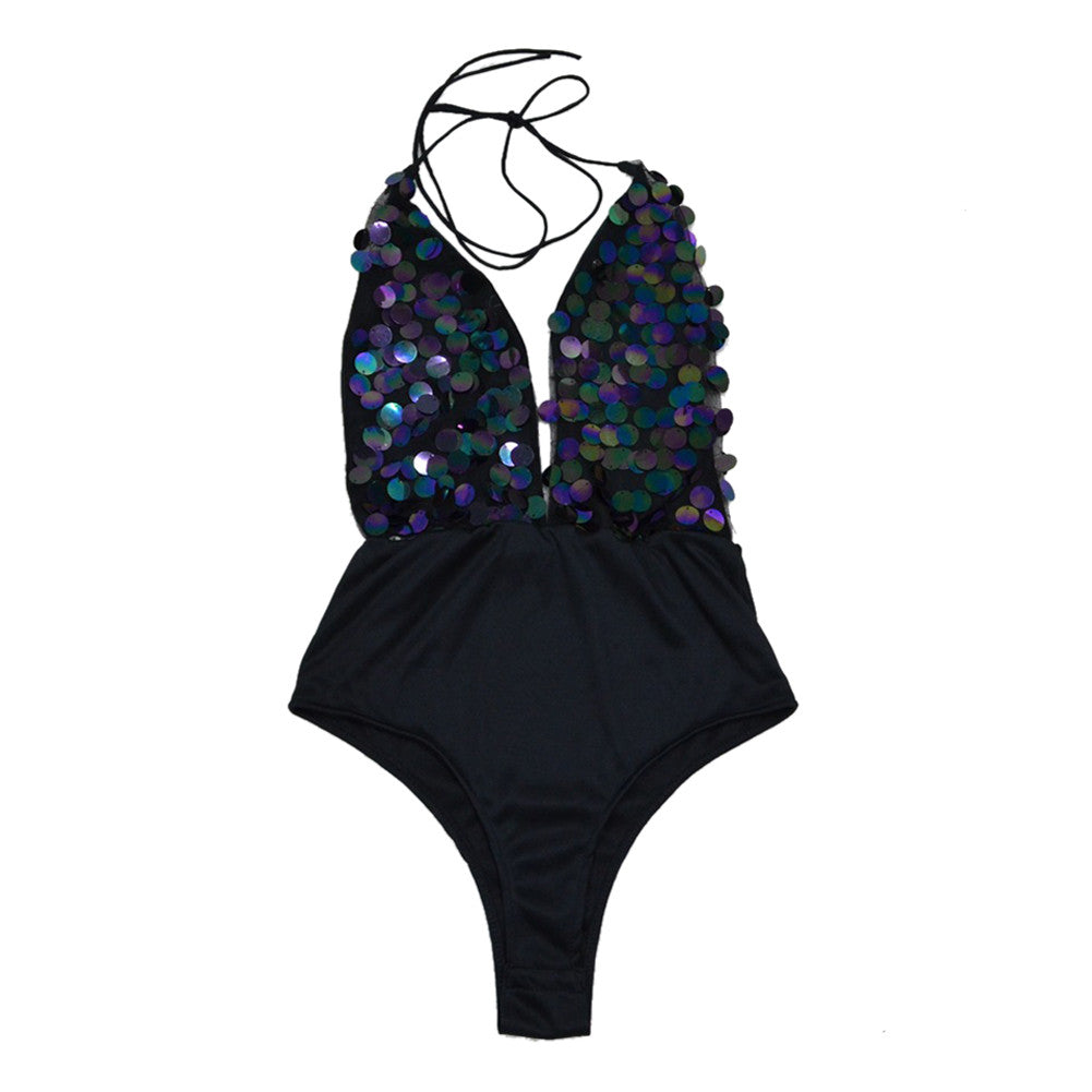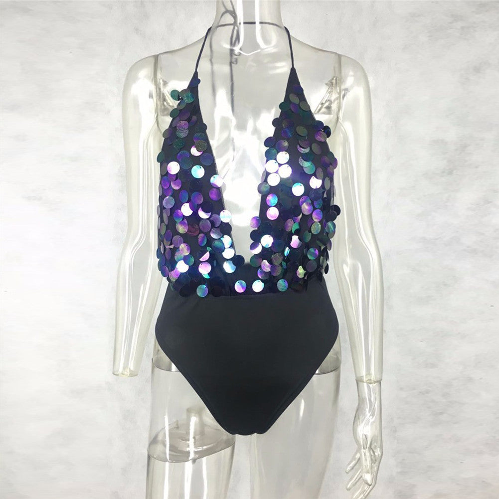 Deep V-neck backless Short Rompers Sequins Jumpsuit Outfit Women Bling Bling Shiny Nightclub Wear Sequins bodysuit Playsuits ELY