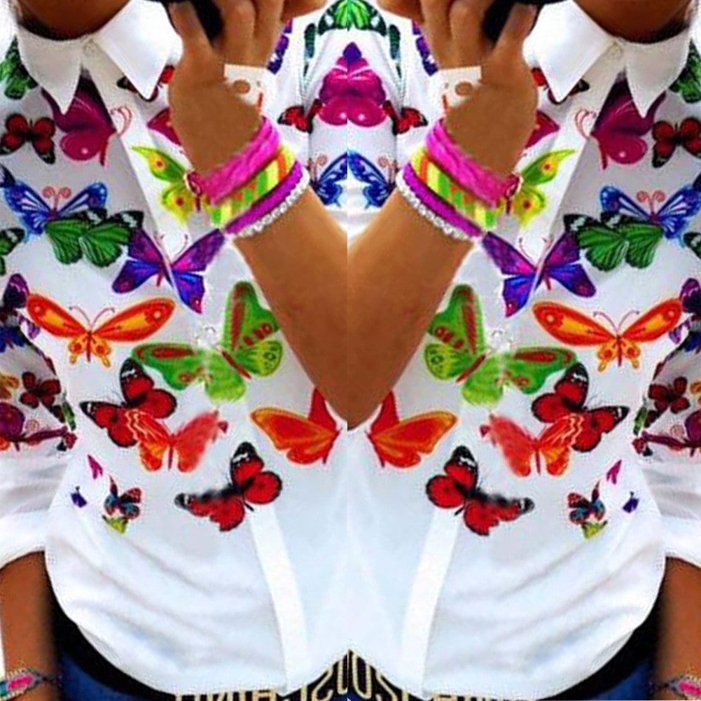 Digital Printed Loose Chiffon Blusas Tops Long Sleeve Shirt Blouse Shirt Women Blusa Feminino Women Tops 1STL ELY