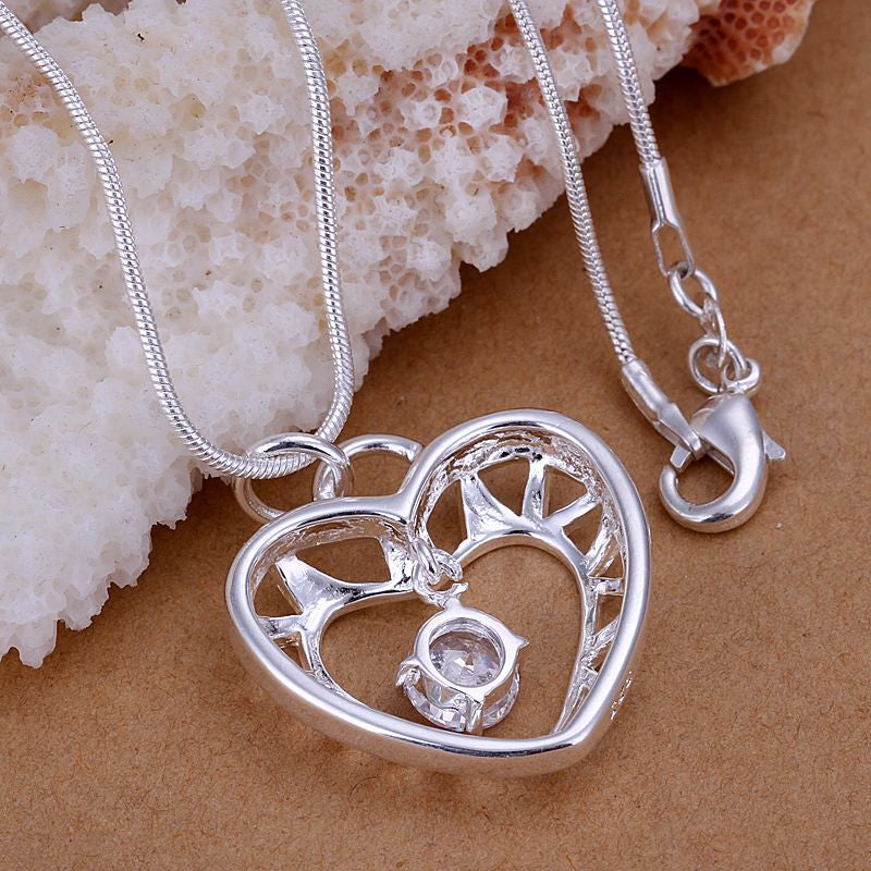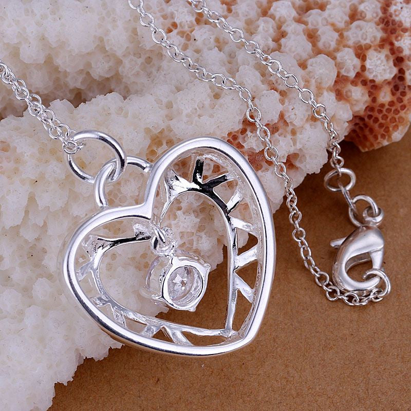 exo silver-plated pendant necklace inlaid stone heart-shaped bead necklace ruby jewelry ELY