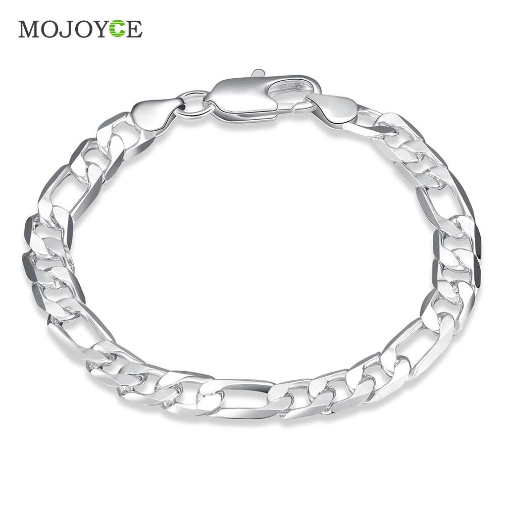 Exquisite Bracelet 8MM Man Elegant Silver Plated Bangle Chain Bracelet Shrimp Buckle Jewelry ELY