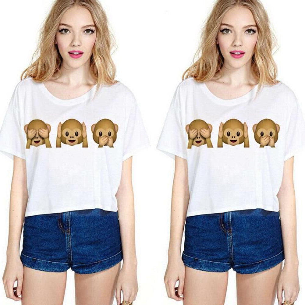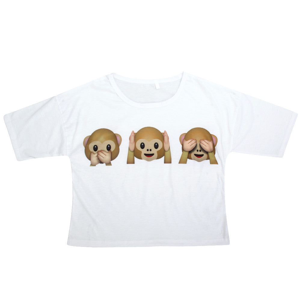 Factory Direct Selling Women Top Emoji Monkeys Icon Smiley T-Shirt 1STL ELY