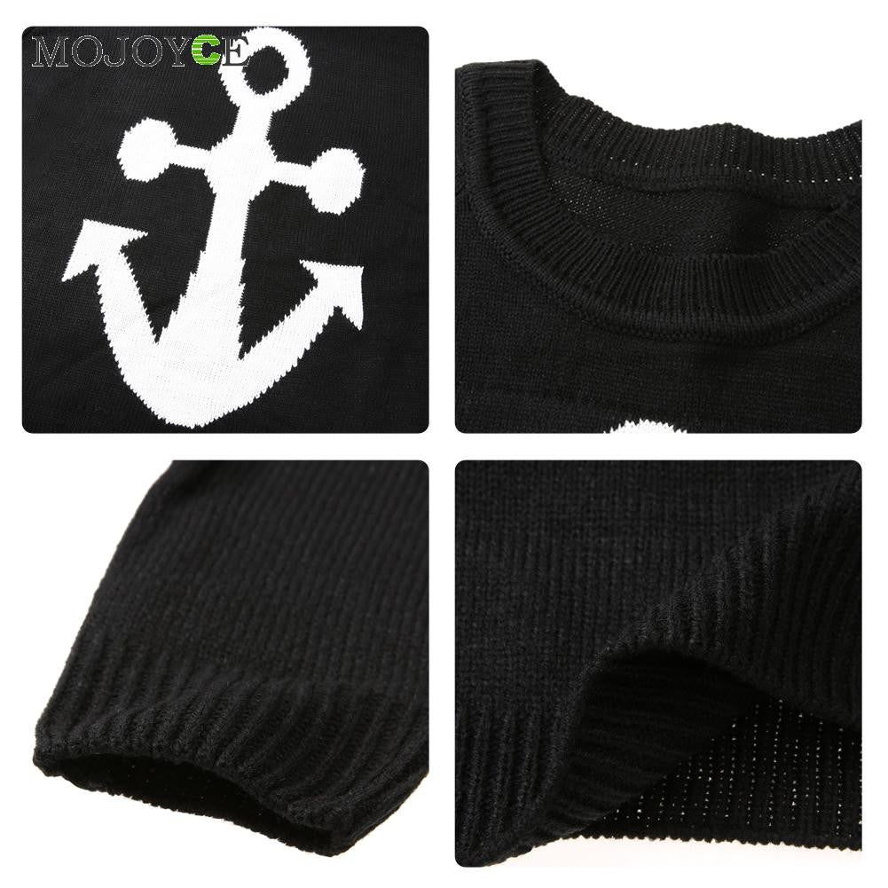 Fahion Long Sleeve Sweatershirt Women Anchor Print Blends Knitted Pullover Casual Black Warm Hoodie Women Tops 1STL ELY