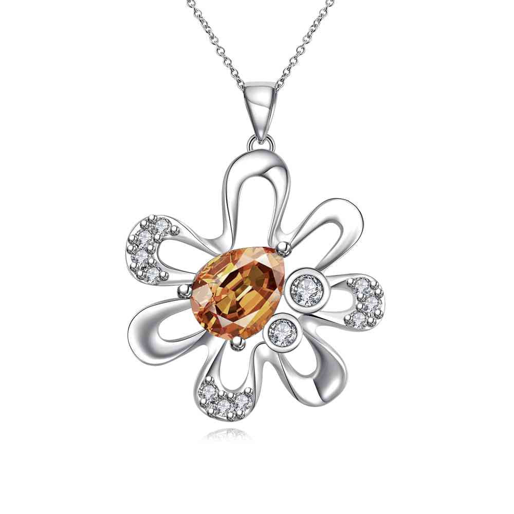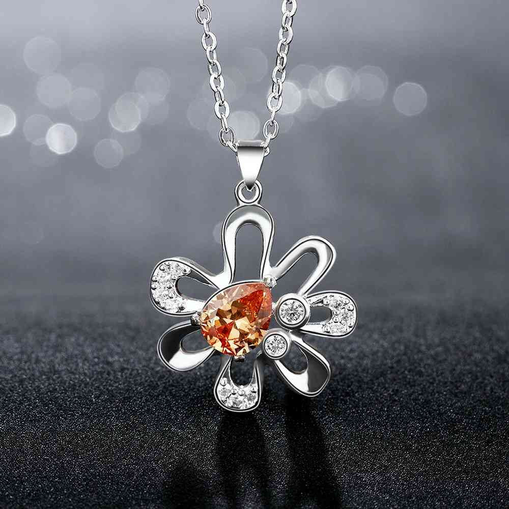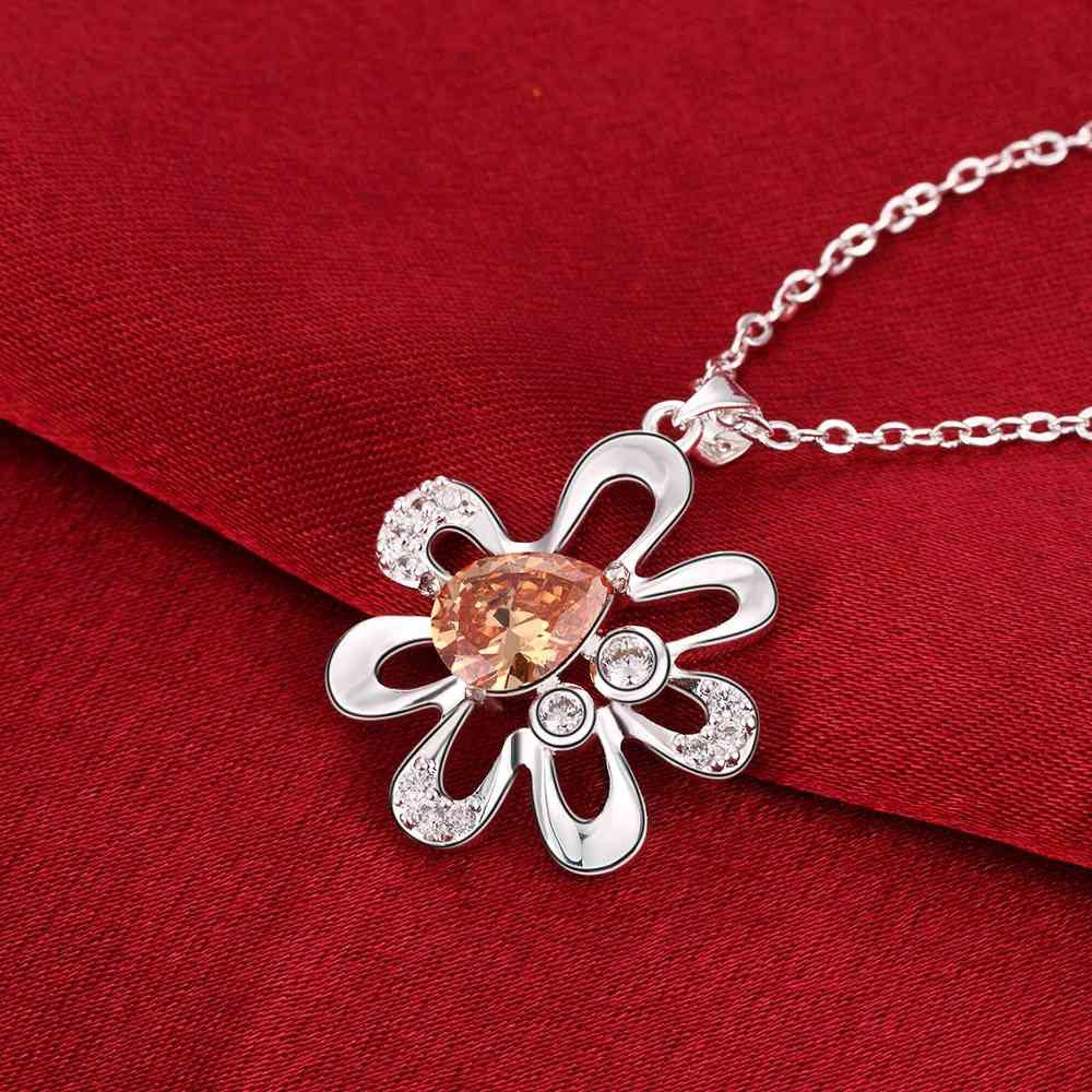floating charms silver plated pendant Flowers inlaid stone bead necklace horloge 714 ELY