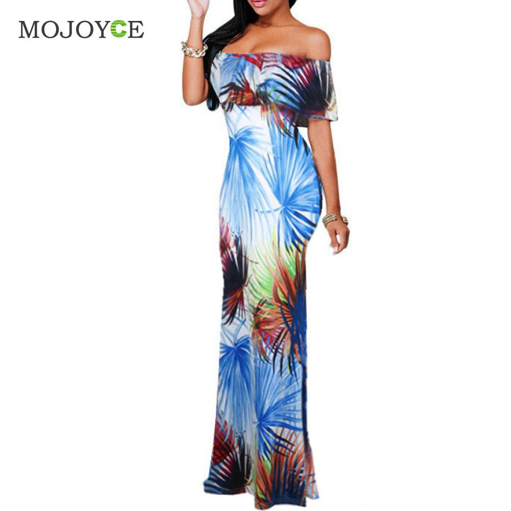 Floral Print Bodycon Women Dress Vestidos Party Evening Maxi Long Dress Vestido De Festa Off Shoulder Boho Dresses ELY