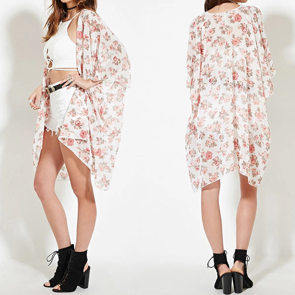 Floral Print Cardigan Women Tops Chiffon Batwing Kimono Cardigan Blusas Kimono Women Blouses Blusa Feminino Shirt Women 1STL ELY