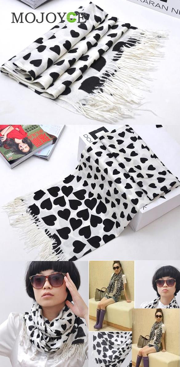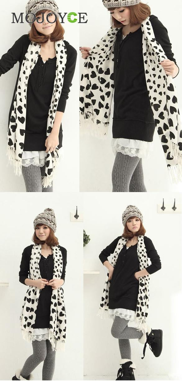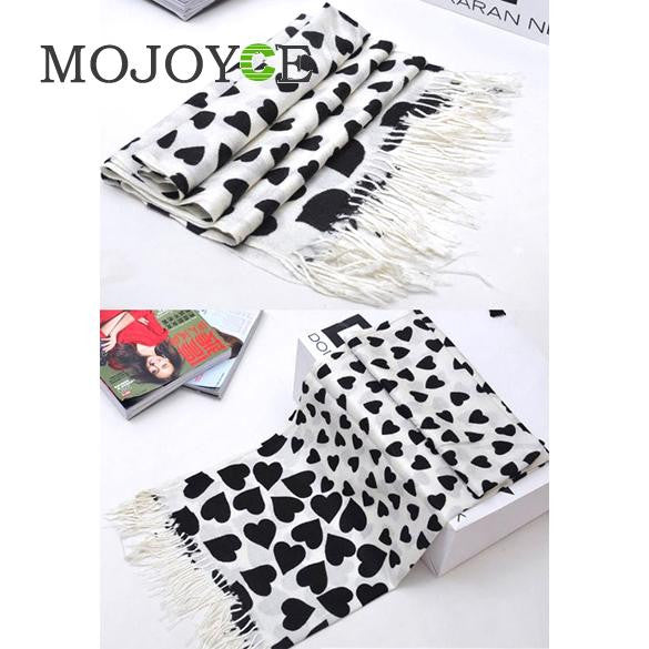 For Lady Girl Love Heart White Face Black Heart Tassel Scarf Shawl 1STL ELY