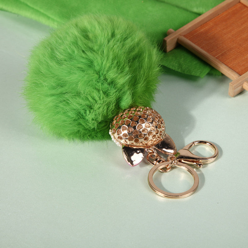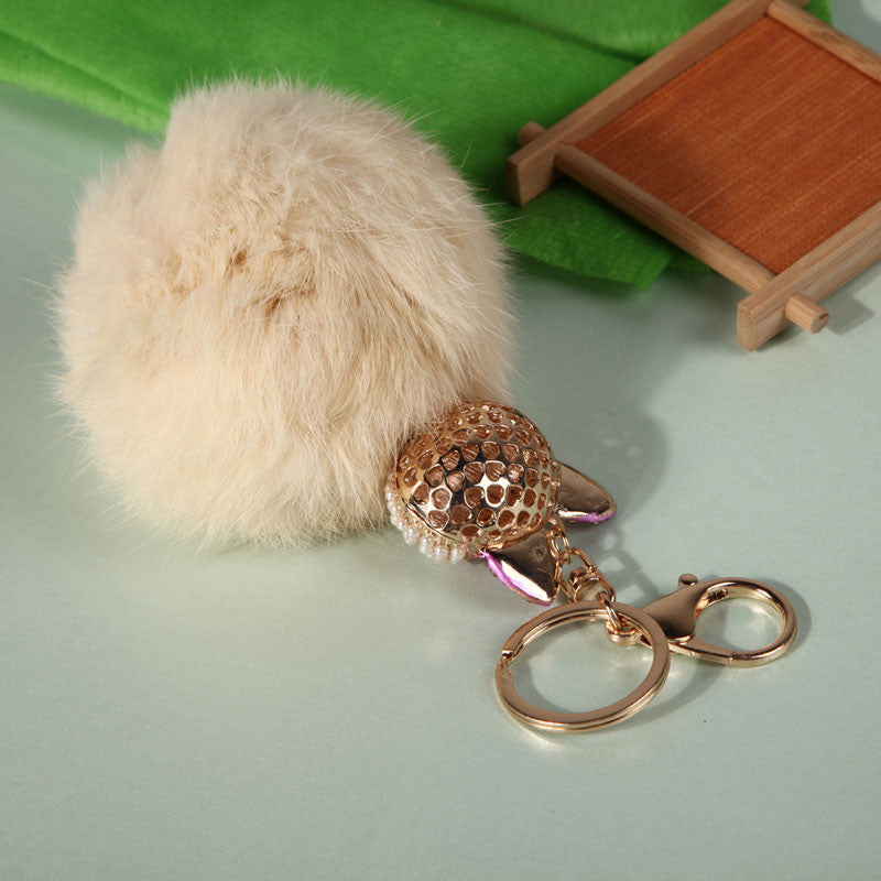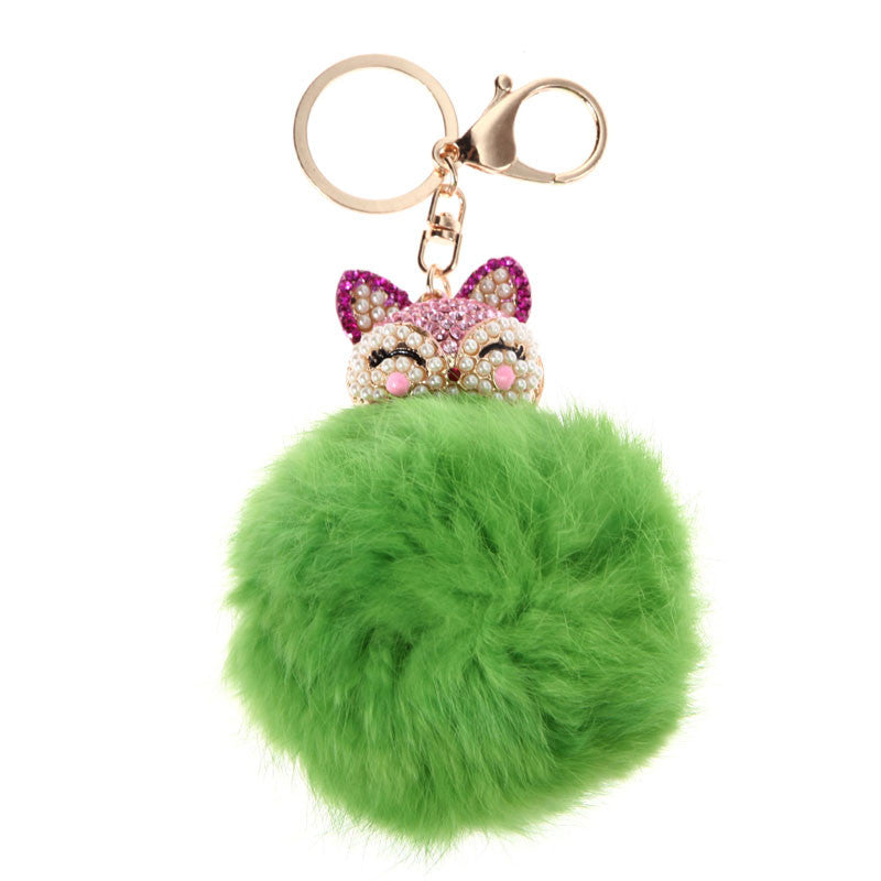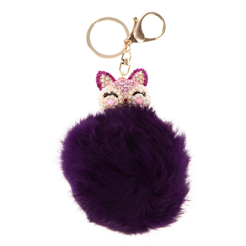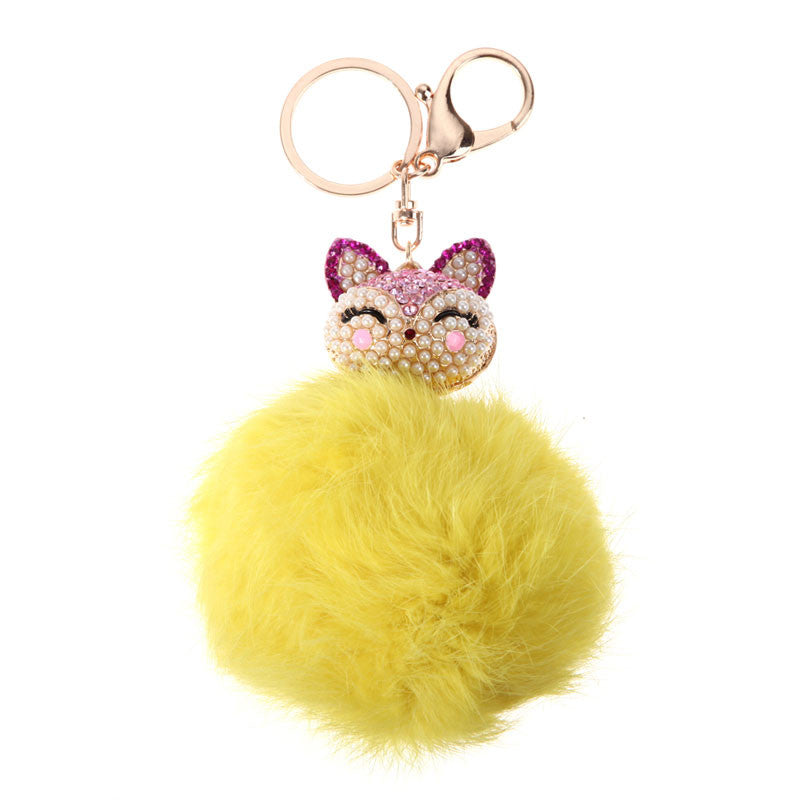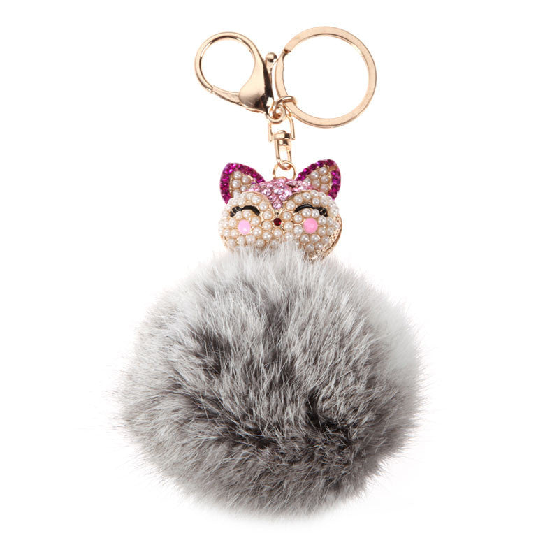 Fox Fur Pearl Rhinestone Ball Top Car Key Ring Bag Charm Key Chains Christamas Gift for Girl 1STL ELY