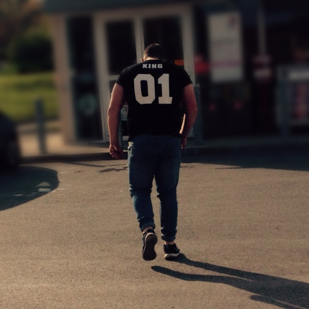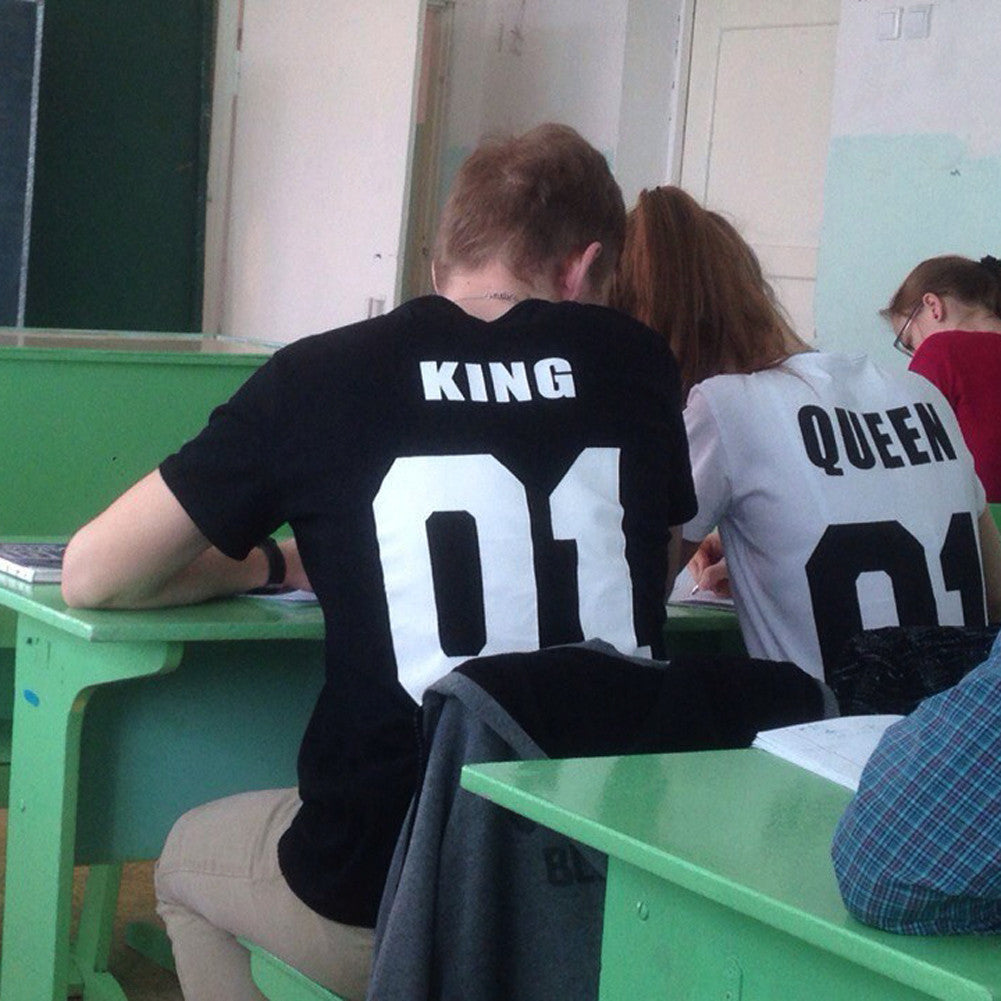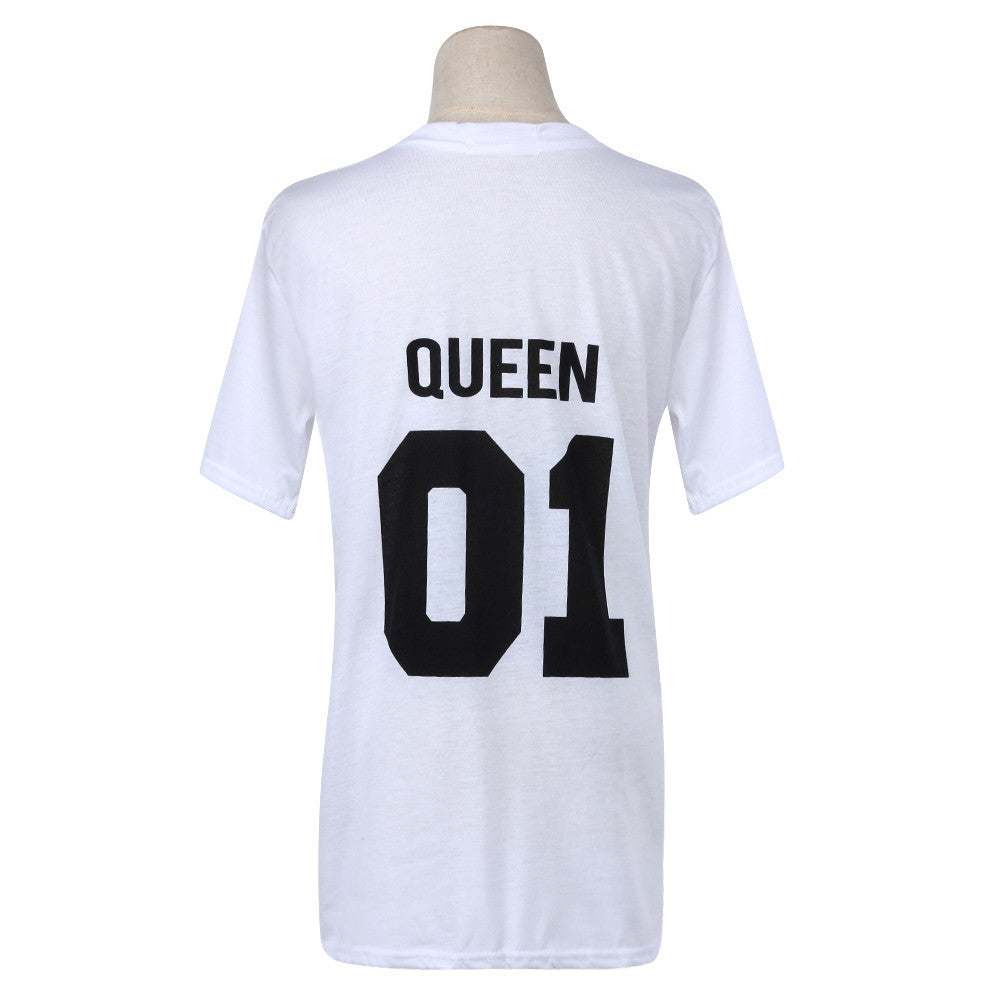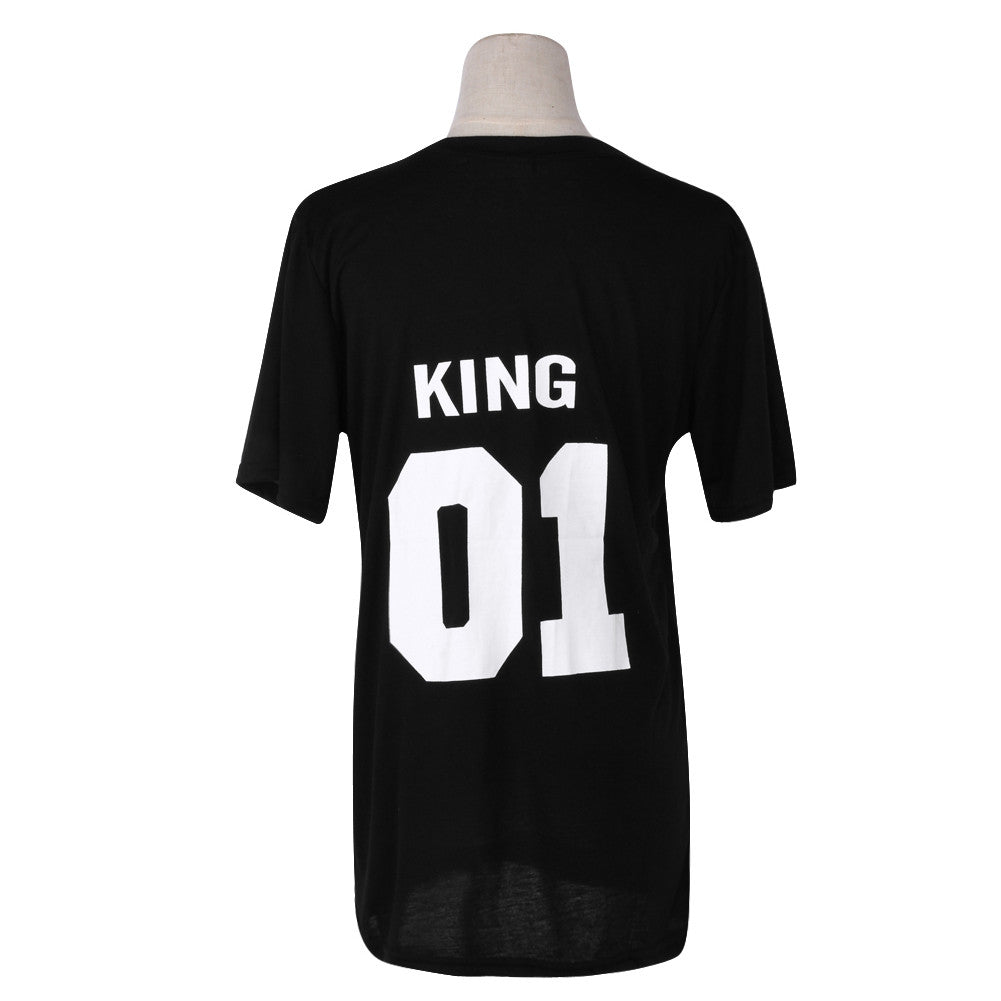 Funny Letter Print Couples Leisure Tops Sleeve O-Neck T-shirt 1STL ELY