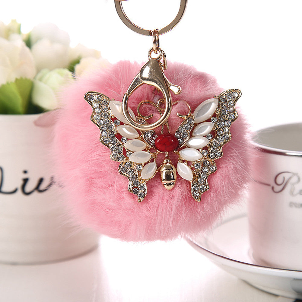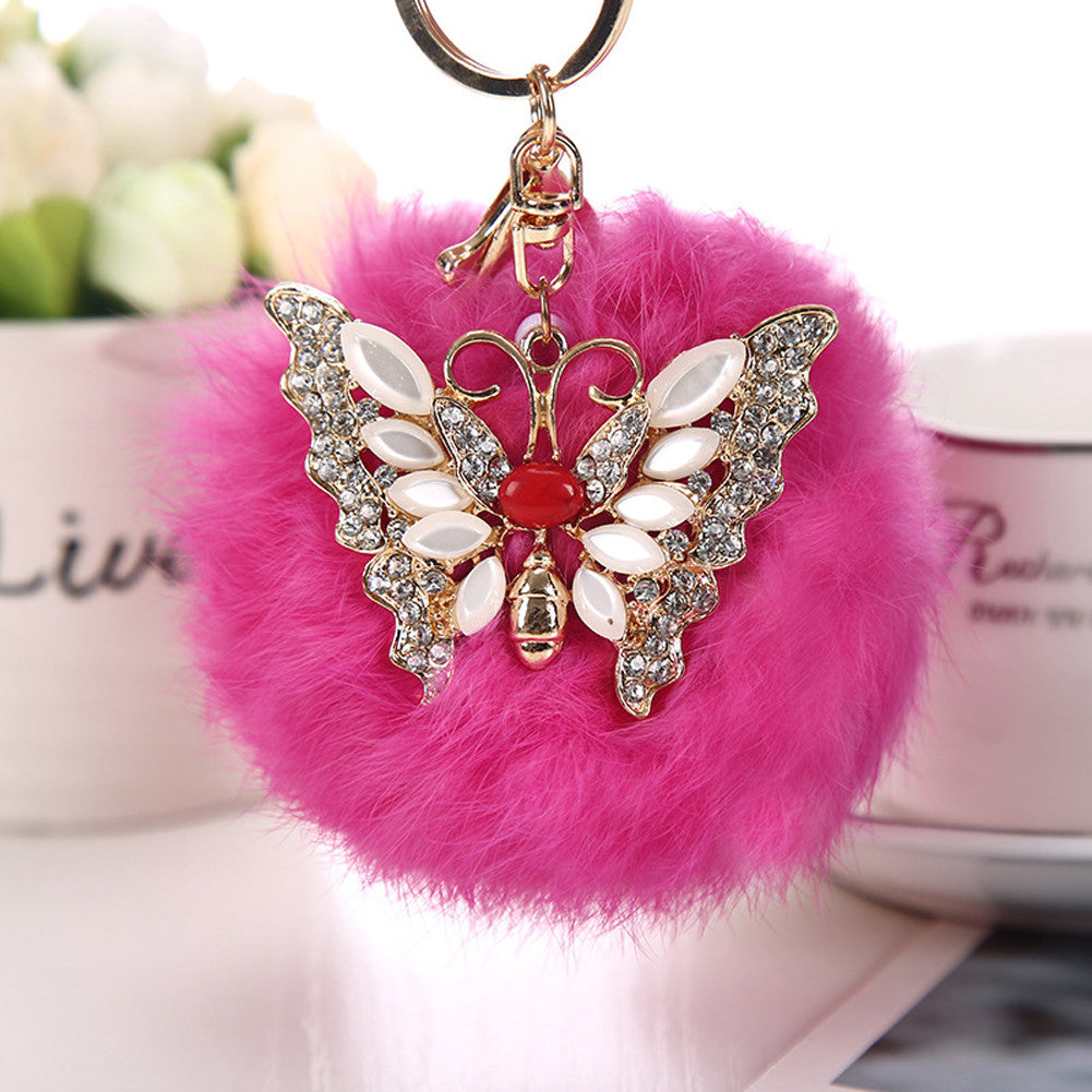 Fur Fluffy Rabbit Hair 9 cm Pompom Ball Key Chain Car Strap Bag Charms for Gift1STL ELY