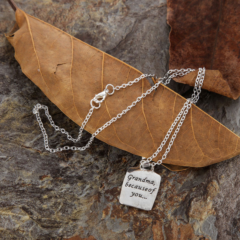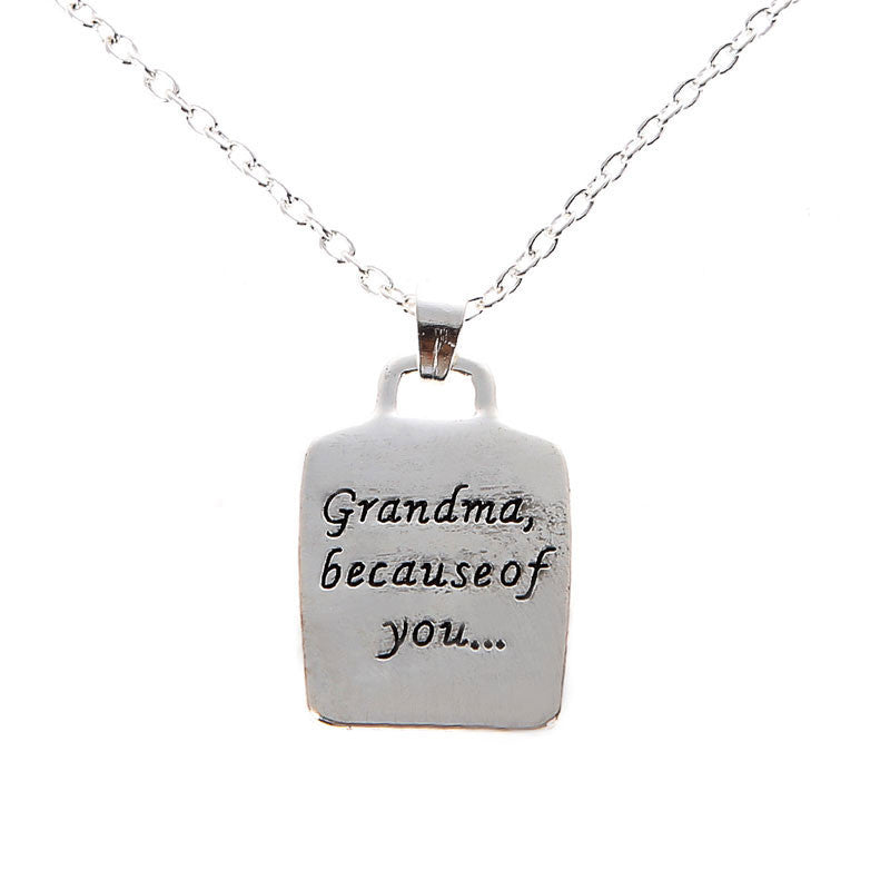 Gift Grandma because of you Letters Pendant Design Necklace Chain Necklaces Jewelry Gift for Grandma ELY