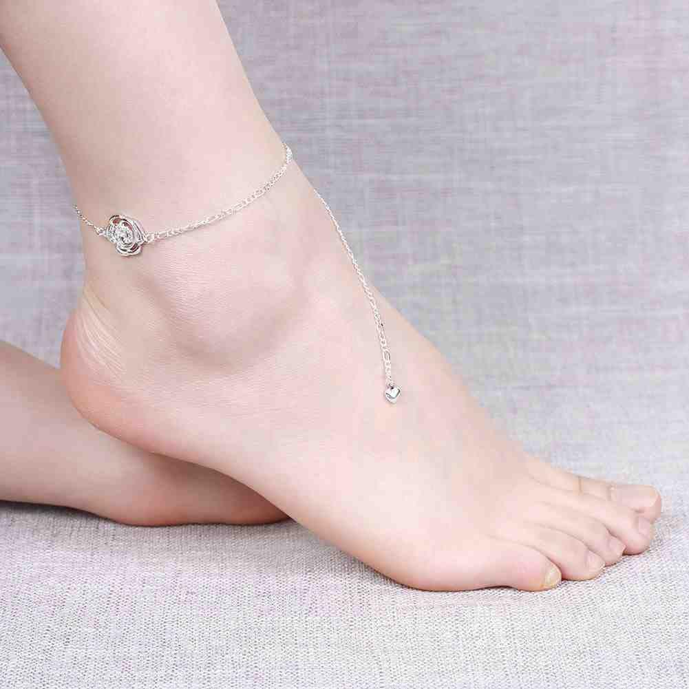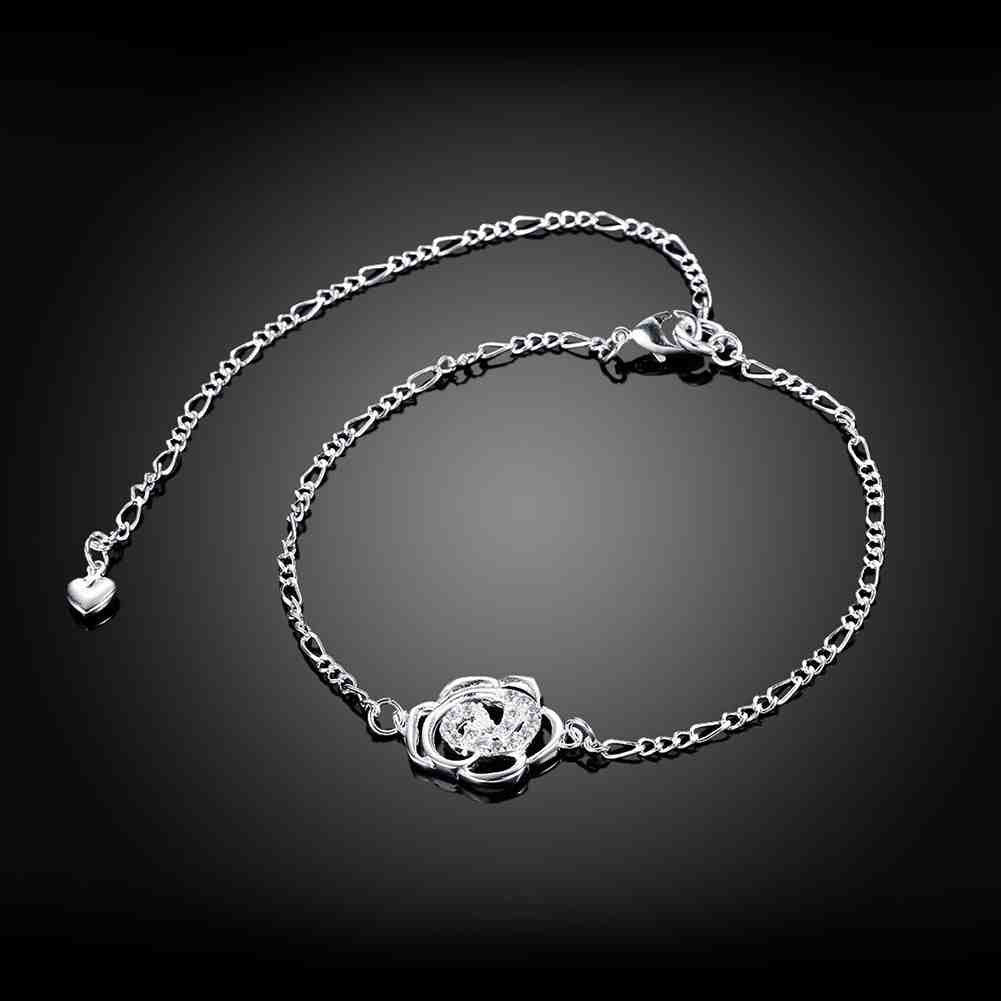 Girls Silver plated jewelry Insets flowers anklet bracelets bangles leg SMTA 2 ELY