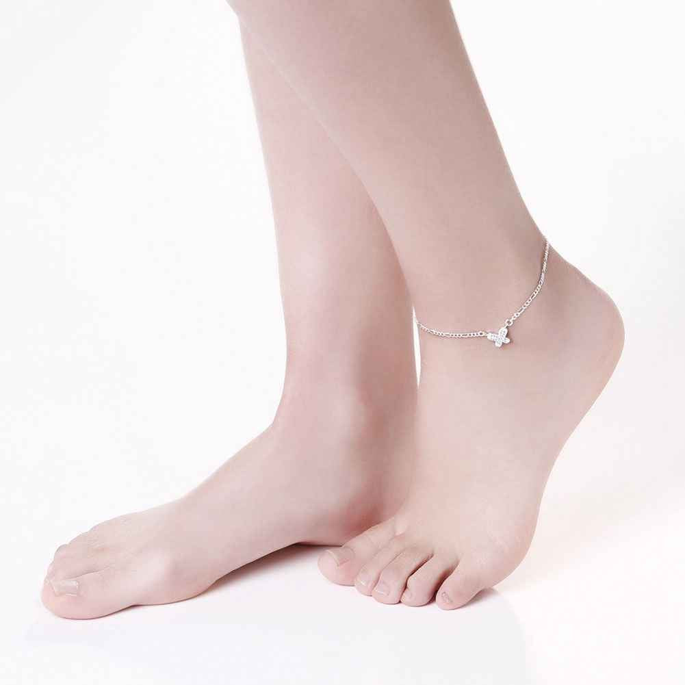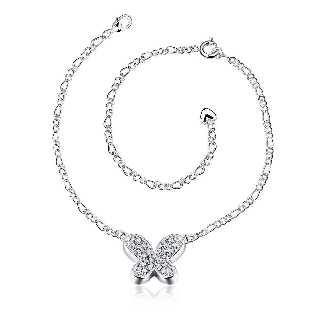 Girls Silver plated jewelry Insets small butterfly anklet bracelets bangles leg SMTA 8 ELY