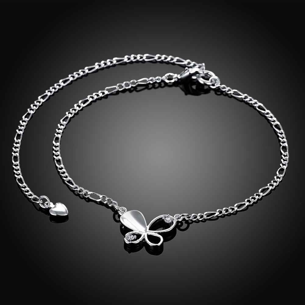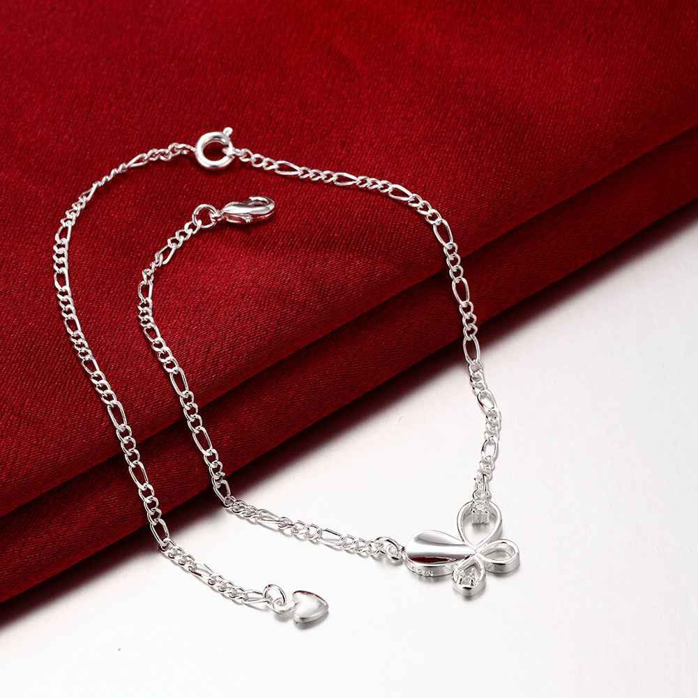 Girls Silver plated jewelry Solid Butterfly anklet bracelets bangles leg SMTA 21 ELY