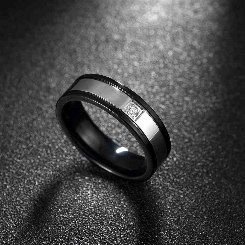 Gorgeous Men's Titanium Steel Engagement rings Round inlaid crystal anel masculino bijouterie TSGR 21 ELY