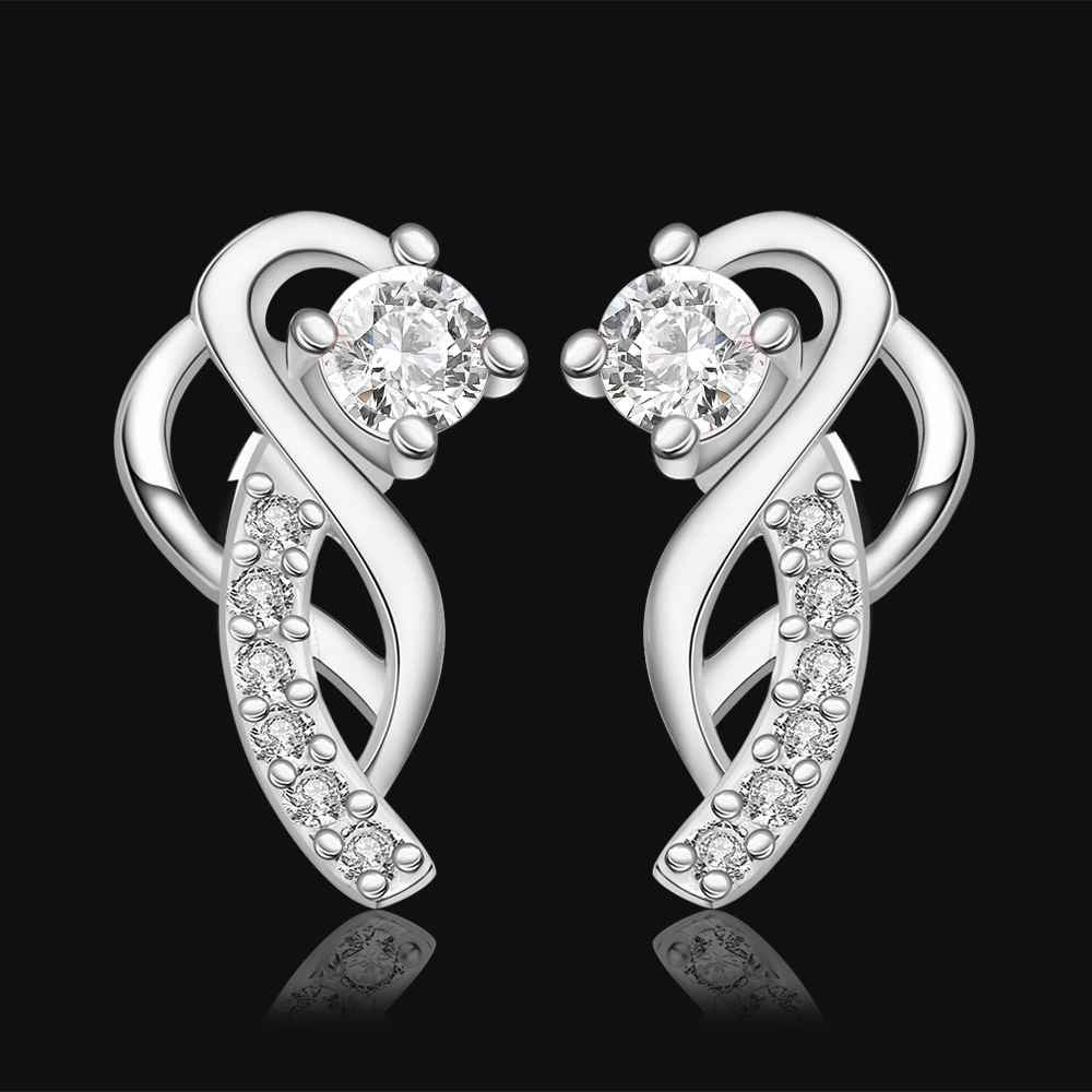 Gorgeous silver plated earings jewelry Moon hook white gem stud orecchini Hand Madeball 23 ELY