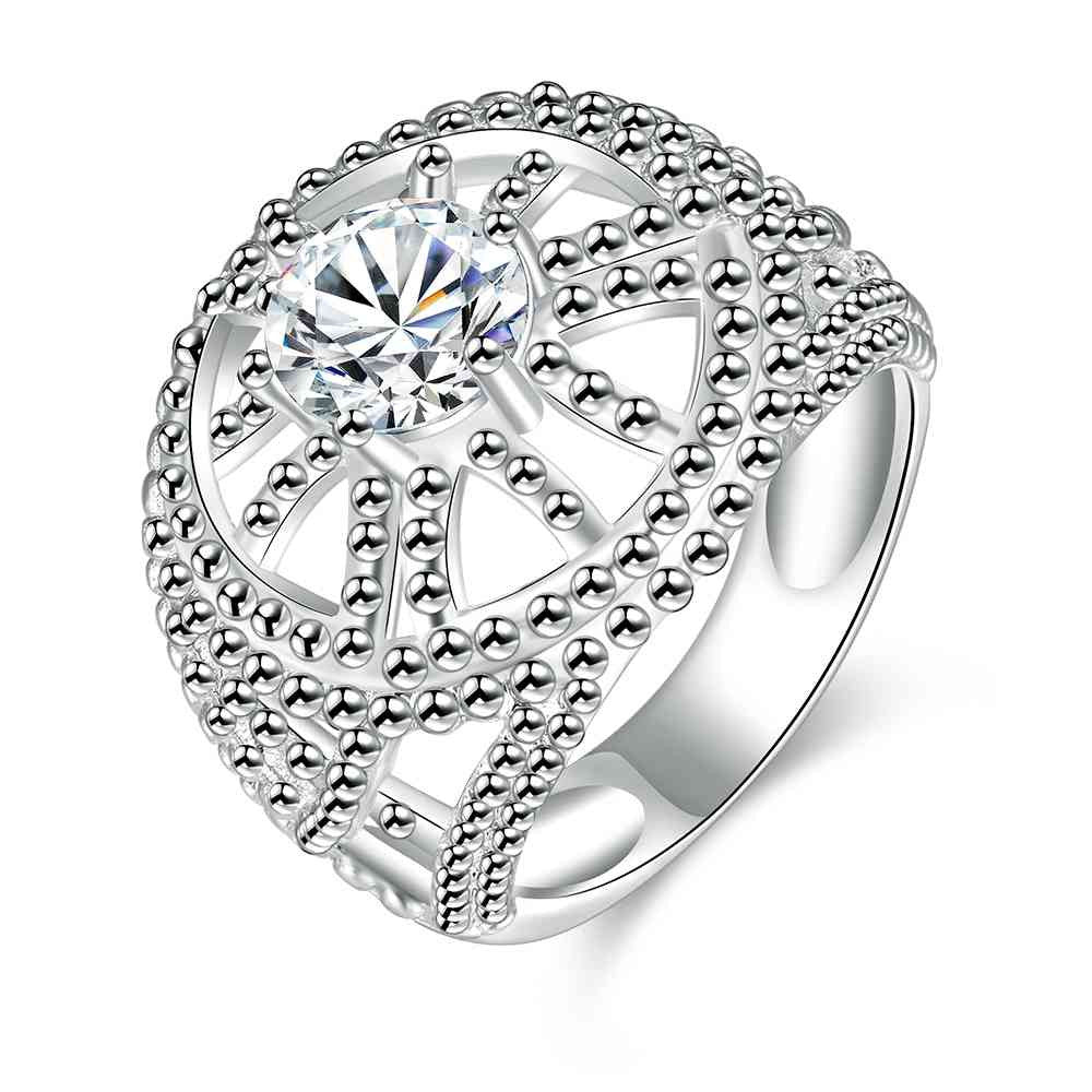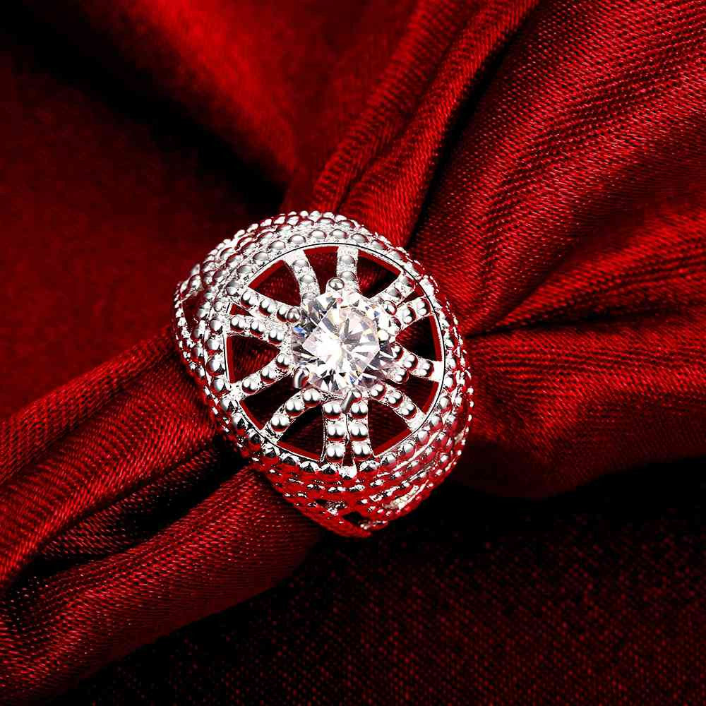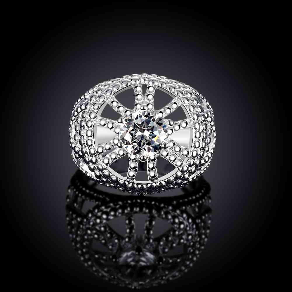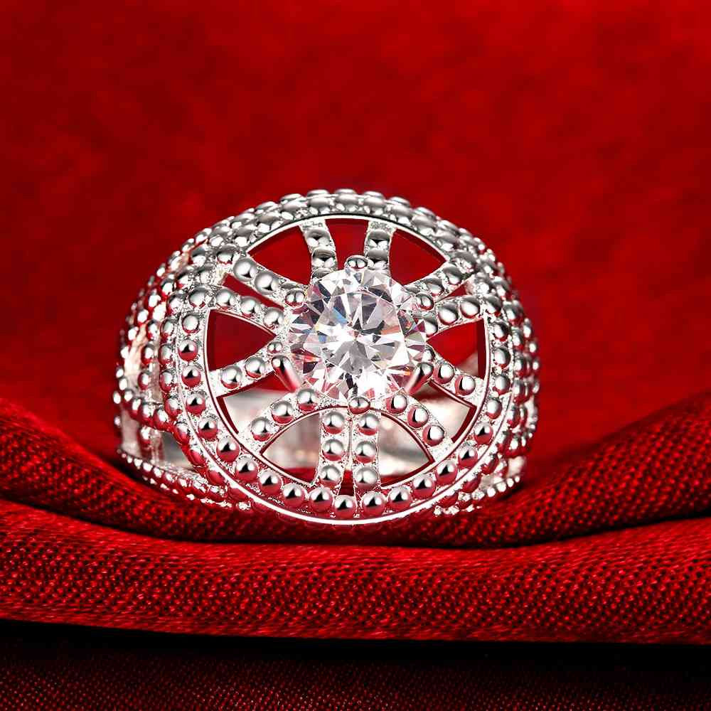 Gorgeous silver rings Hollow circular insets anillos bear bone 58 ELY