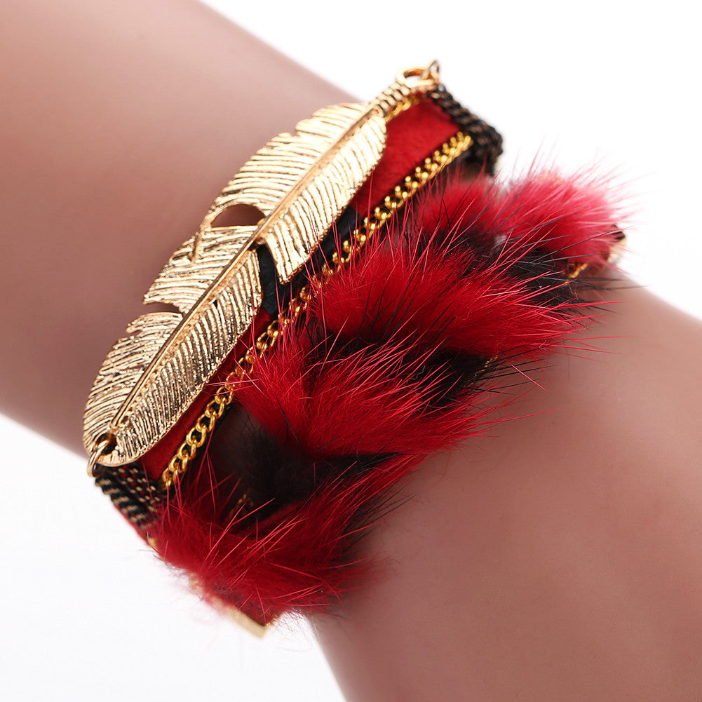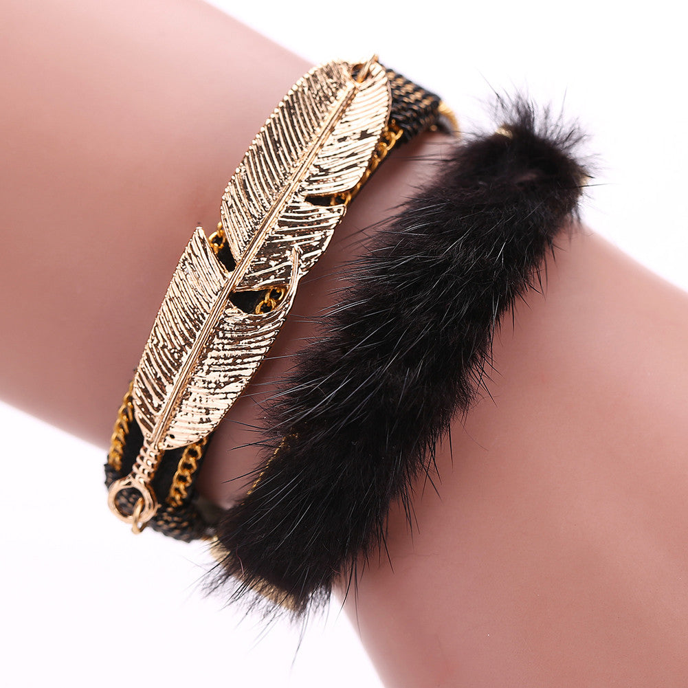 Handmade Bangles Bracelet Women Men Alloy Feather Leaves Magnetic Multilayer Leather Bracelets Bangles1STL ELY