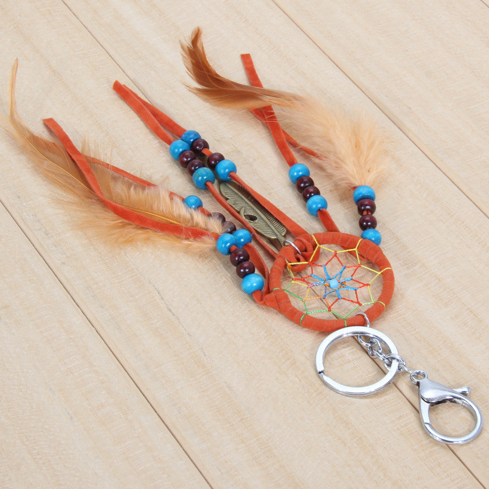 Handmade Dream Catcher Bag Key Chains Feathers Beads Key Ring Pendant Dream Catcher Key Chain Jewelry 1STL ELY
