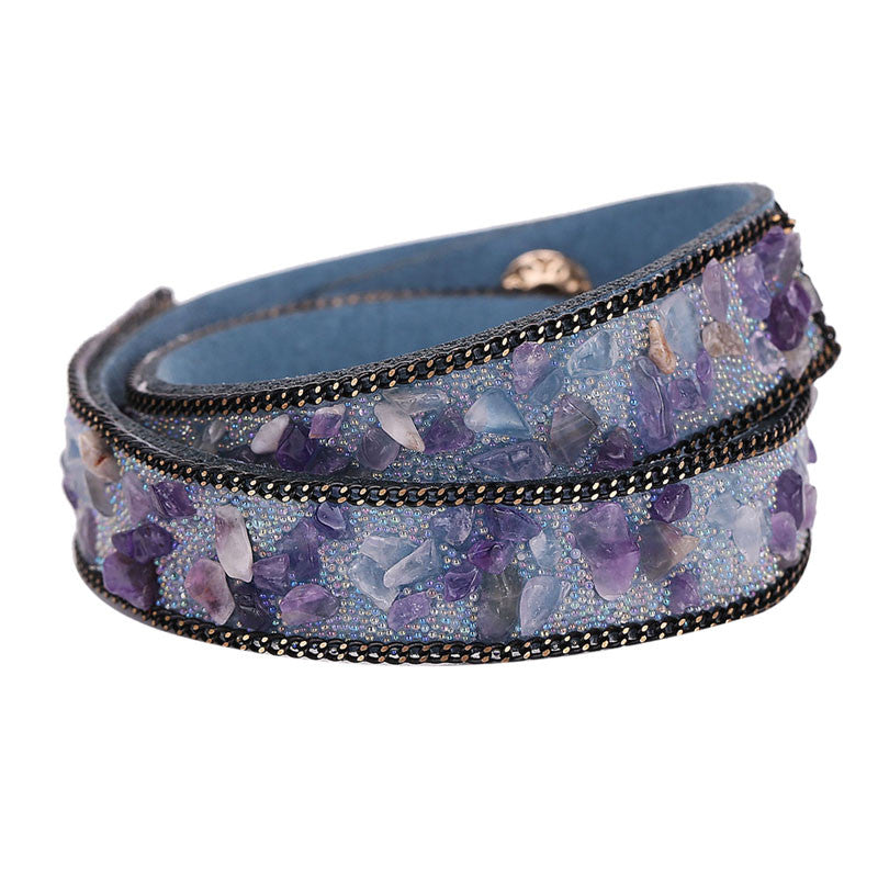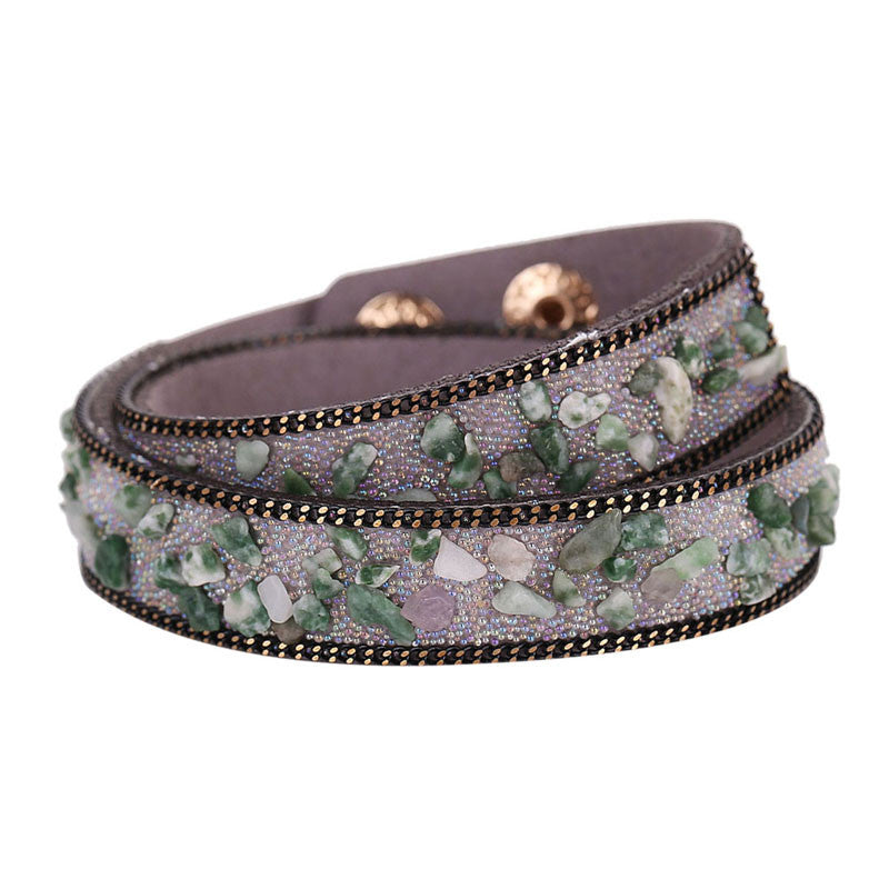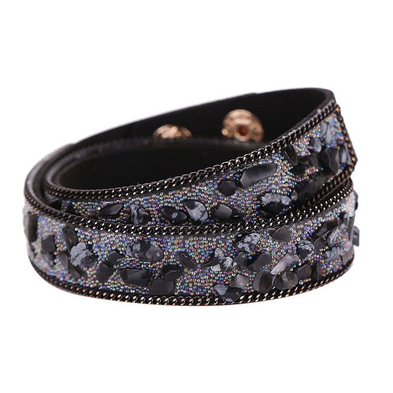 Handmade Gravel Stone Crystal Wristband Muiltilayer Bracelets Rhinestone Leather Braid Bangles Jewelry Feminina ELY