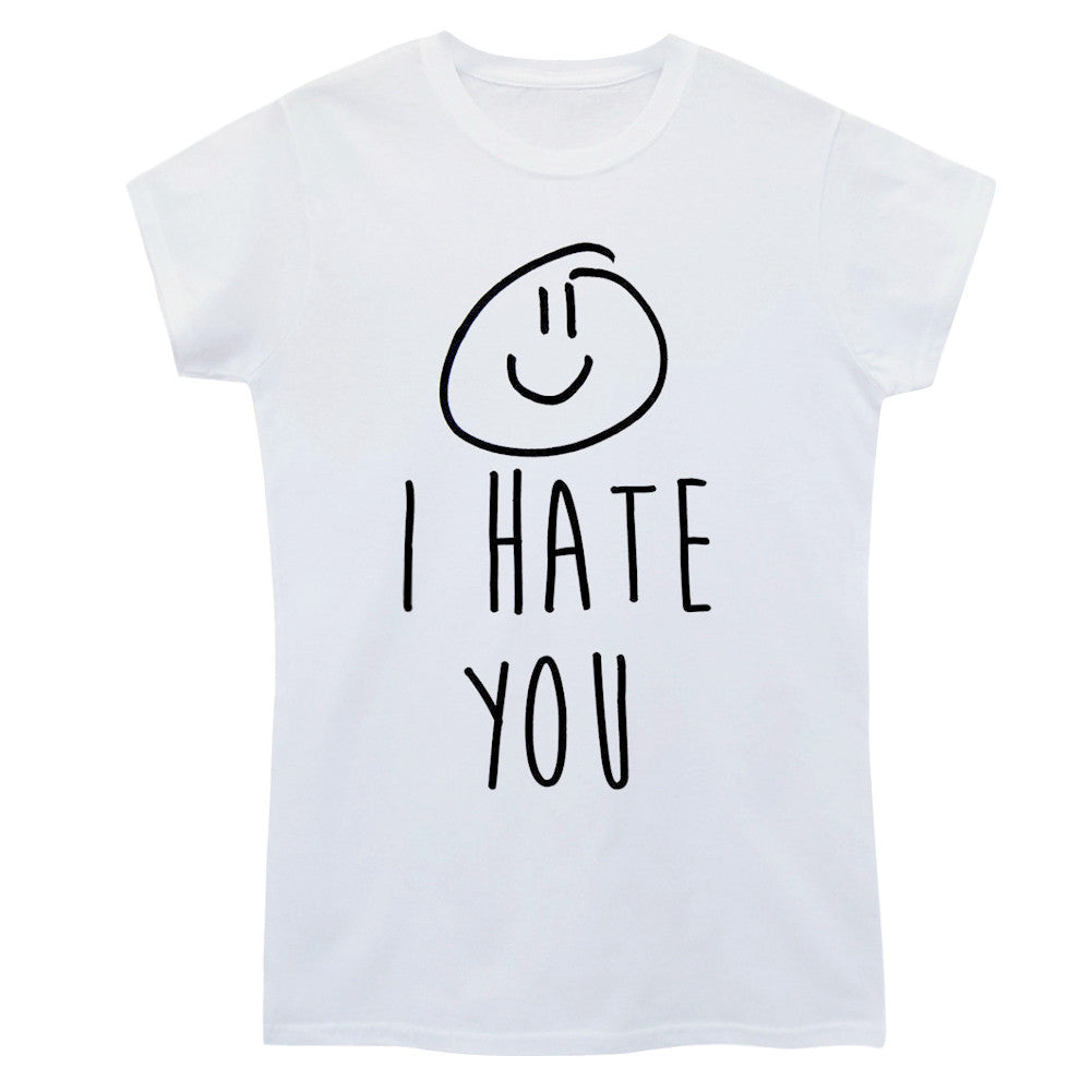 I Hate You X Smiley Hipster Cool Men Women T Shirt White Cotton Blend Letter Tee T shirt 1STL ELY