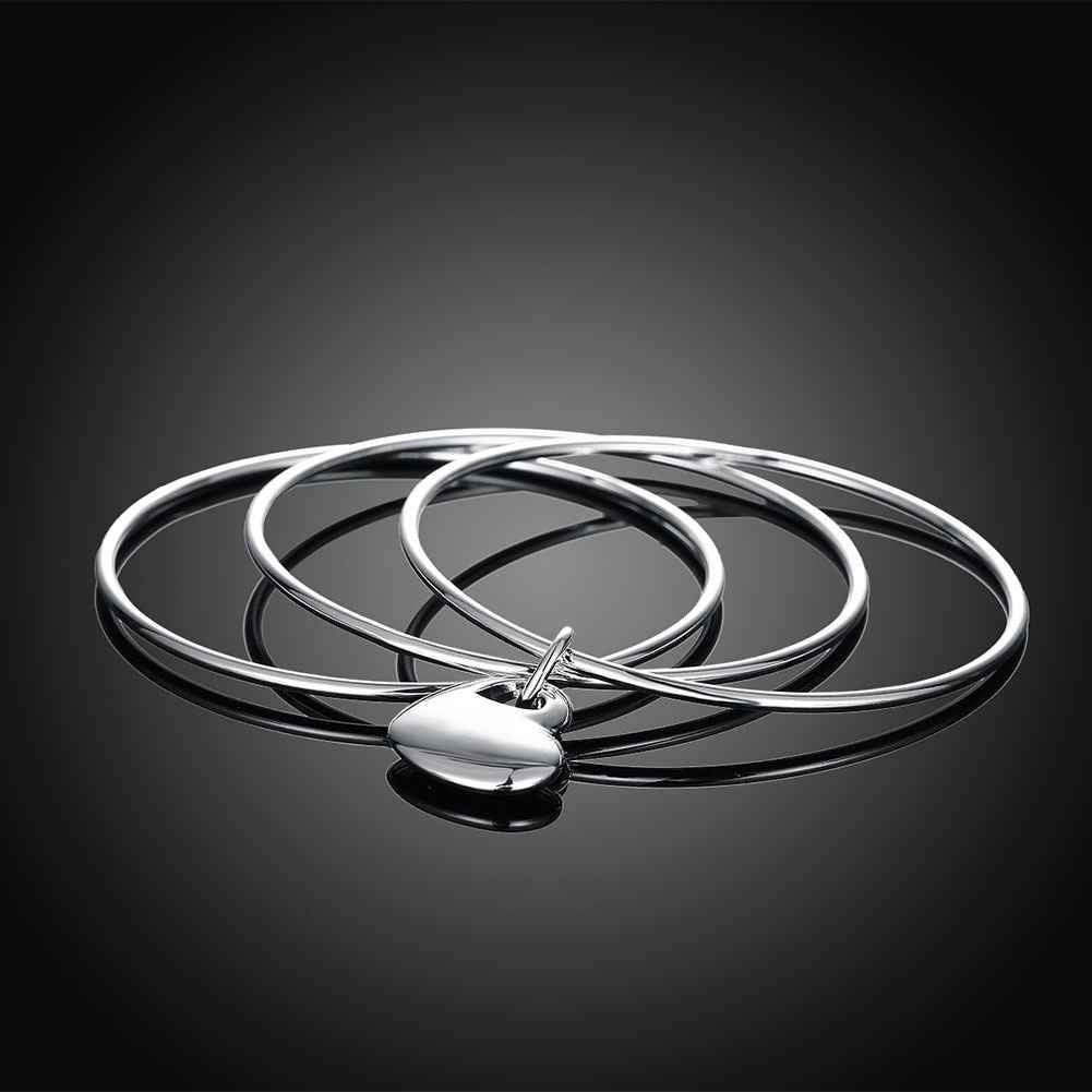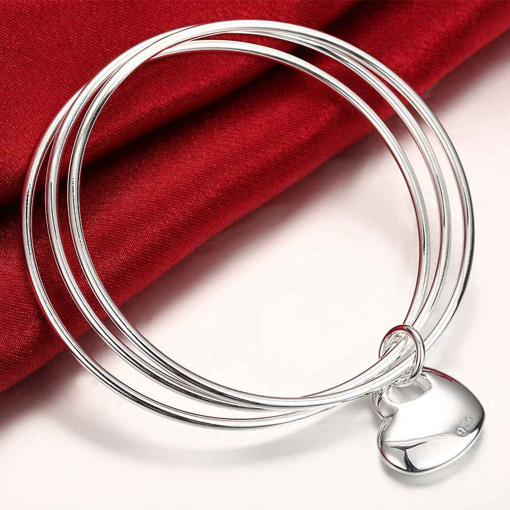 jewellery charms silver plated friendship bangle Triple Circle heart women pulseras bone SMTB175 ELY
