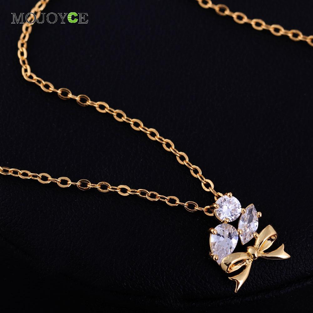 Jewelry 18K Gold Plated Bow-Knot Rhinestone Pendant Necklace ELY