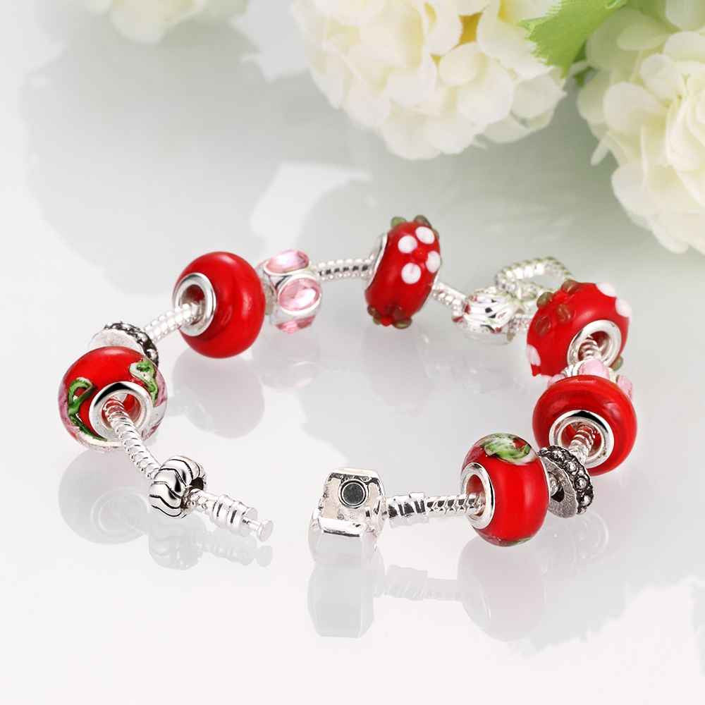 jewelry of silver bracelets Hollow Beads pulseira ruby jewelry ELY