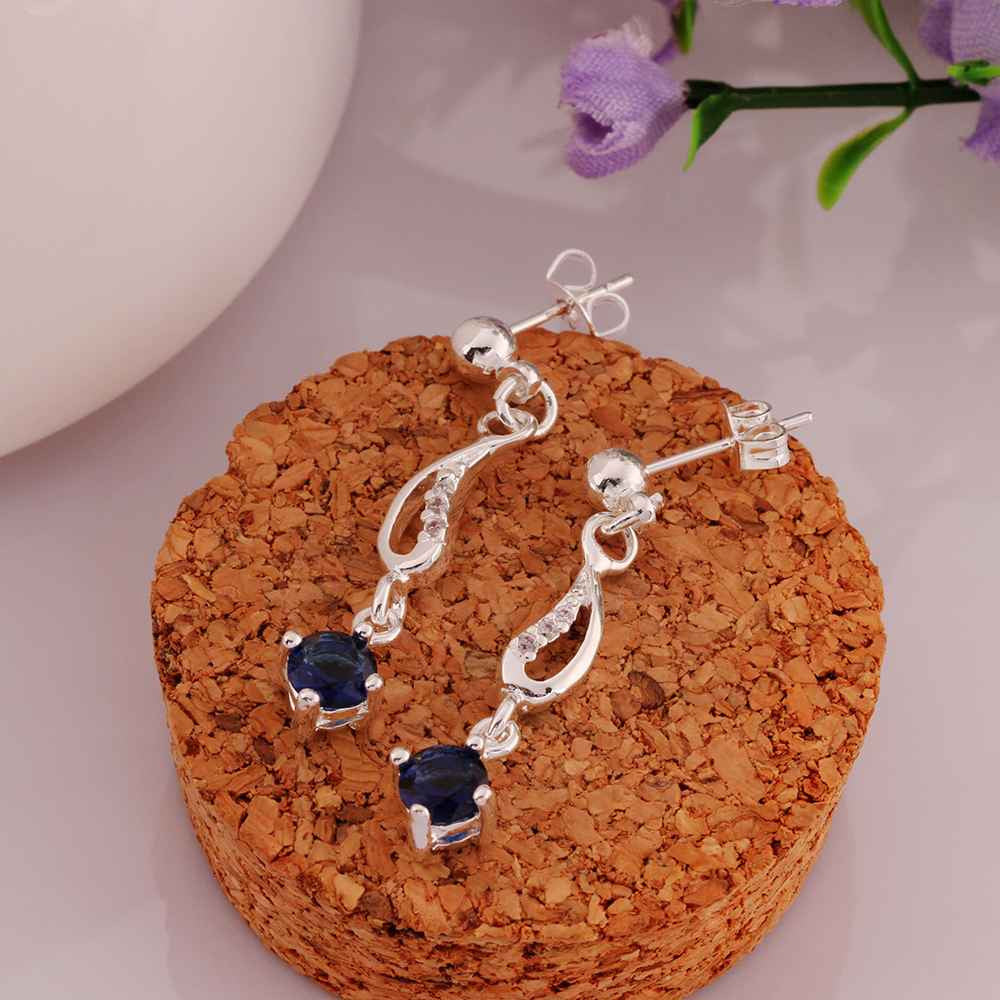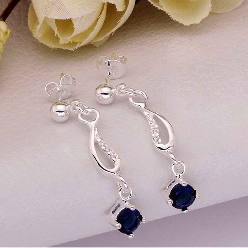 Jewelry Women's silver plated insets Sapphire stud earings Bijoux Earrings For Wedding 514 ELY