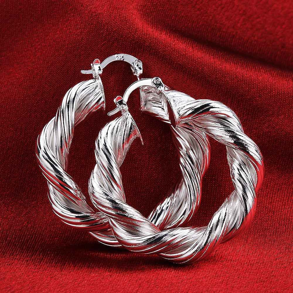 Jewelry Women's silver plated small Twisted Rope hoop earings Bijoux Earrings For Wedding 593 ELY